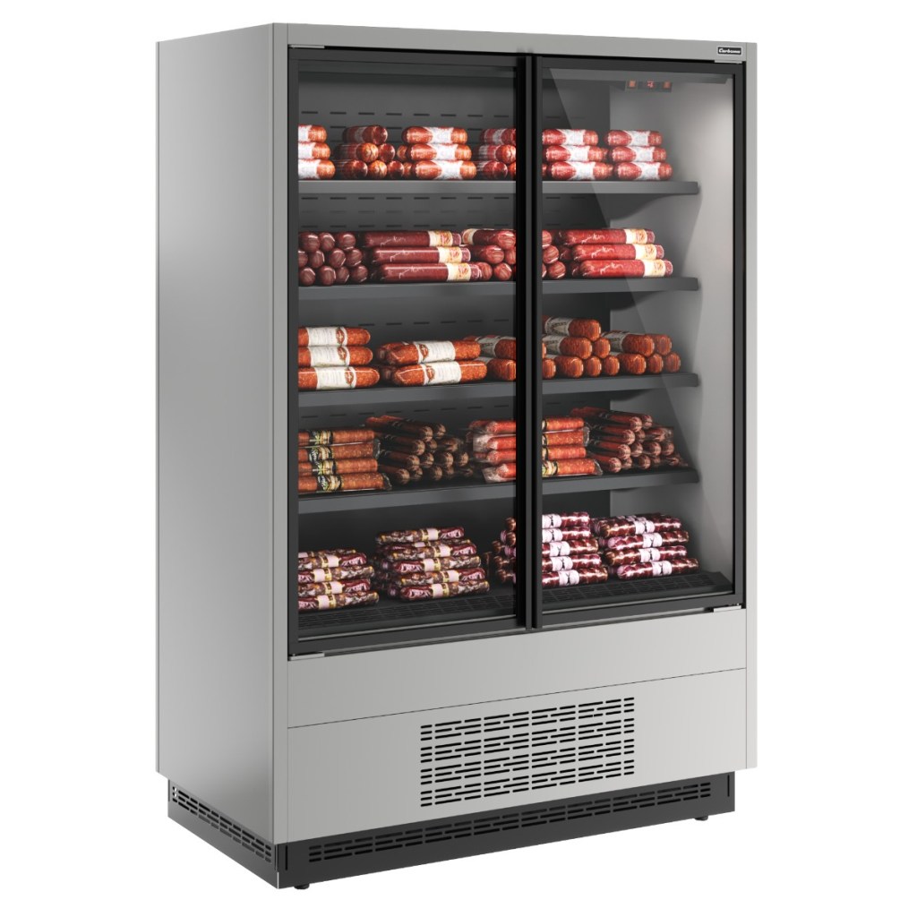 Горка холодильная Carboma FC20-07 VV 1,0-1 STANDARD фронт X1 (версия 2.0) (9006-9005) применяется в предприятиях общественного питания и торговли для эффективного охлаждения, кратковременного хранения и предпродажной демонстрации напитков, мясных и птицеводческих продуктов, полуфабрикатов, молочной и гастрономической продукции.