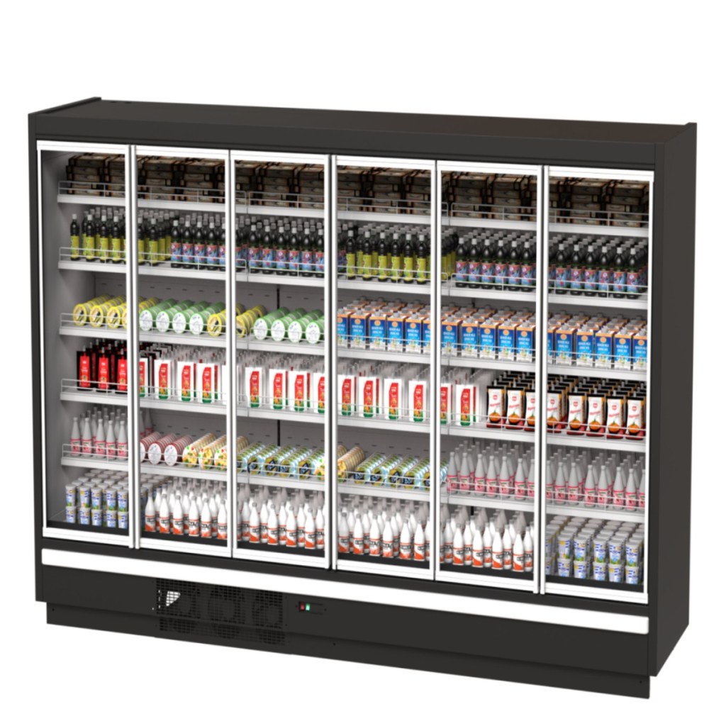 В стандартную комплектацию входят 6 энергосберегающих распашных дверей, 12 сеточных полок с возможностью регулировки по высоте, а также кабель с вилкой для подключения. Холодильный агрегат в комплект не входит и приобретается отдельно.
