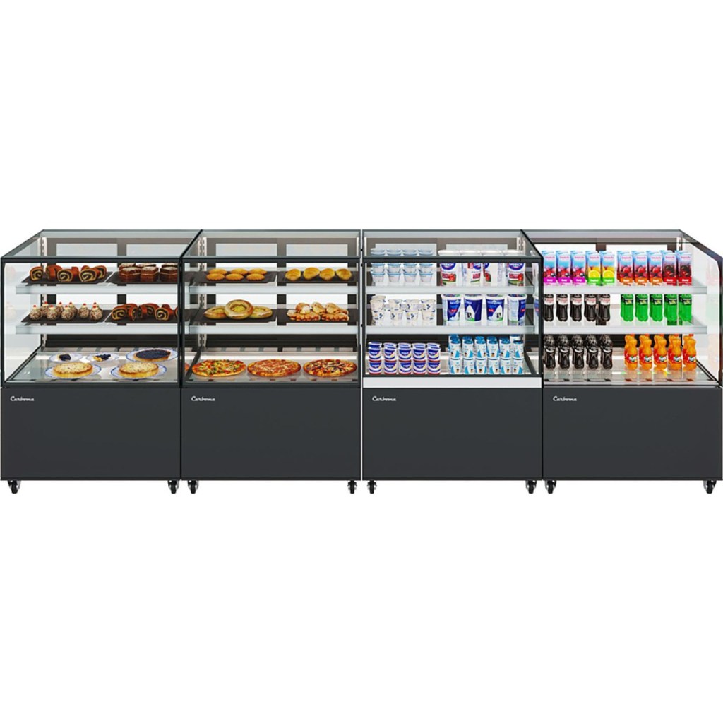 Модель сочетает стеклянные полки и матовую зону выкладки, что придаёт премиальный внешний вид и подчёркивает презентацию товара. Идеально подходит для кафе, пекарен, кондитерских и заведений с открытой витриной.