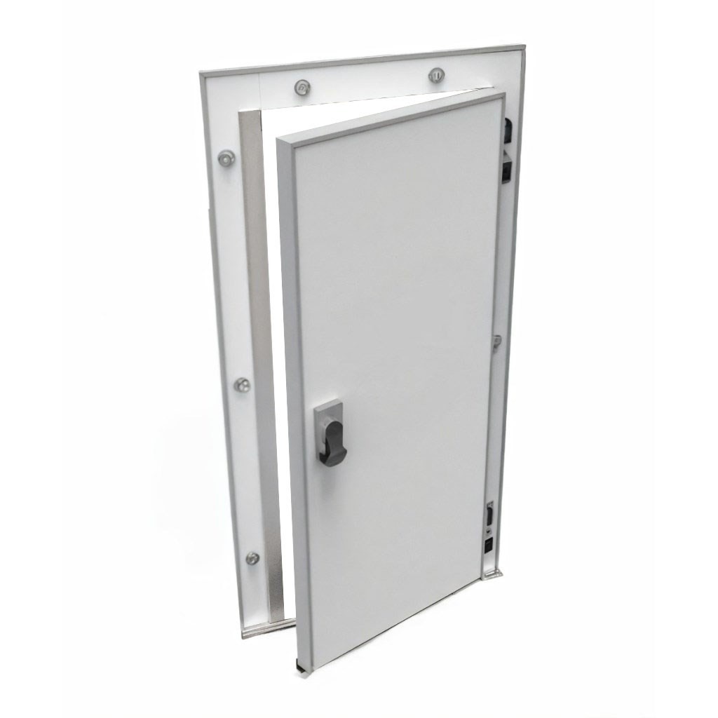 Каталог оборудования Холодильное оборудованиеДвери для холодильных камерРаспашные одностворчатые холодильные двериДверь холодильная распашная одностворчатая СТ-РДО-1000*1900/80 (с металлической рамой) Дверь холодильная распашная одностворчатая СТ-РДО-1000*1900/80 (с металлической рамой) Код товара: 065-858 Поделиться: WhatsAppTelegram СравнитьДобавить в КПВ избранное 0 36 483 ₽ В корзину 0 шт Под заказСамовывоз сегодня бесплатно Взять в кредит Купить в лизинг Получить консультацию в WhatsApp Описание Характеристики Отзывы 0 Инструкции 1 Дверь холодильная распашная одностворчатая СТ-РДО-1000*1900/80 (с металлической рамой) – это надежное и энергоэффективное решение для установки на предприятиях пищевой промышленности, в логистических центрах, на складах и терминалах. Дверь спроектирована для стабильной работы в условиях пониженных температур, что делает её оптимальным выбором для объектов с повышенными требованиями к сохранности продукции. В среднетемпературном исполнении СТ-80 дверь предназначена для эксплуатации при температурах до –5°. Особенности: Теплоизоляция: плита из пенополиуретана Dow Izolan высокой плотности (40–45 кг/м³) обеспечивает минимальные теплопотери, не содержит вредных хлорфторуглеродов и безопасна для пищевых производств. Пожаробезопасность: предел огнестойкости EI 15 позволяет использовать дверь в зонах с повышенными требованиями к безопасности. Конструкция: прочная рама из анодированного алюминия устойчива к коррозии, дверное полотно покрыто оцинкованной сталью толщиной 0,45–0,65 мм с полиэфирным слоем (RAL 9003), что обеспечивает долговечность и гигиеничность. Герметичность: двухконтурное резиновое уплотнение сотовой структуры на ПВХ-основе исключает мосты холода и обеспечивает надежное удержание температуры. Фурнитура: комплектуется надежной европейской фурнитурой. Замок оснащён системой аварийного открывания с флуоресцентной маркировкой, что исключает риск блокировки персонала внутри камеры. Холодильная дверь СТ-РДО-1000*1900/80 сочетает в себе прочность, долговечность и высокую энергоэффективность. Она гарантирует надежное сохранение температурного режима и безопасность эксплуатации, полностью соответствуя требованиям предприятий пищевой отрасли и объектов хранения.Изображение товара, представленного на фото, может отличаться от его фактического вида. Показать все Ширина светового проема1000 ммВысота светового проема1900 ммТемпературный режимСреднетемпературный (от -5 до +5) Толщина двери80 ммОткрываниеЛевое/Правое Замок с аварийным открываниемДа БрендСевер Оставить отзыв Еще никто не оставил отзыв на этот товар Буклет двери изотермические и технологические ТМ Север.pdf Ранее просмотрено Под заказ 37 319 ₽ Дверь холодильная распашная одностворчатая СТ-РДО-1000*2000/80 (с металлической рамой)