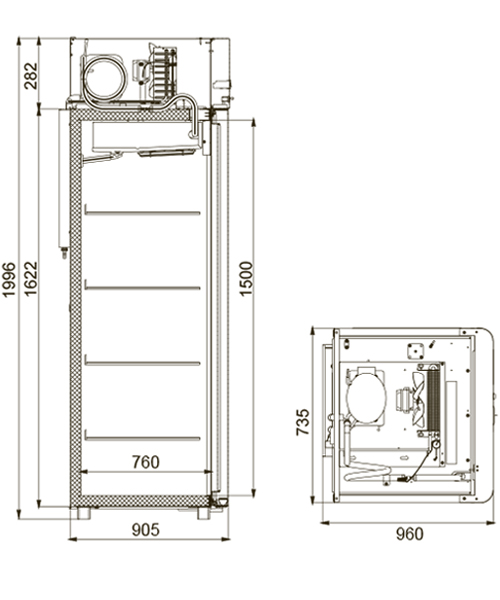 Каталог оборудования Холодильное оборудованиеШкафы холодильныеШкафы морозильные низкотемпературные до -18 °СШкаф морозильный Polair Polair CB107-Gm Alu Шкаф морозильный Polair Polair CB107-Gm Alu Код товара: 062-591 Поделиться: WhatsAppTelegram СравнитьДобавить в КПВ избранное 0 163 200 ₽ В корзину 0 шт Под заказСамовывоз сегодня бесплатно Взять в кредит Купить в лизинг Получить консультацию в WhatsApp Описание Характеристики Отзывы 0 Инструкции 4 Шкаф морозильный Polair Polair CB107-Gm Alu разработан для демонстрации и надежного хранения продуктов на предприятиях общественного питания и торговли. Цельнозаливной корпус выполнен из нержавеющей стали как снаружи, так и внутри (кроме задней стенки), что гарантирует высокую прочность и долговечность конструкции. Алюминиевые профили дверей и верхней панели подчеркивают современный и премиальный внешний вид шкафа. Оборудование рассчитано на работу при температуре окружающей среды до +40 °С и относительной влажности воздуха до 80%, что делает его надежным решением даже в сложных условиях эксплуатации. Основные особенности: Многофункциональная контрольная панель с жидкокристаллическим дисплеем Верхнее расположение агрегата, обеспечивающее удобный доступ к внутреннему объему Поддержка дистанционного мониторинга и записи данных в журнал контроллера (при использовании сетевой карты), а также передача данных через Bluetooth Клапан Шредера и компенсационный клапан с ПЭНом обогрева ПЭН обогрева трубки слива конденсата и ПЭН обогрева дверного проема для предотвращения образования наледи Распашные двери с полностью интегрированными ручками и эластичными магнитными уплотнителями, обеспечивающими максимальную герметизацию Микропереключатель, отключающий вентилятор и включающий подсветку при открытии дверей Встроенная внутренняя подсветка, улучшающая обзор содержимого Регулируемые по высоте ножки и педаль для удобного открывания двери Замок для обеспечения безопасности хранения 4 полки формата GN 2/1 (530×650 мм) с допустимой нагрузкой до 40 кг Толщина теплоизоляции корпуса — 61 мм Изображение товара, представленного на фото, может отличаться от его фактического вида. Показать все Габаритные размеры735×945×1996 ммДиапазон рабочей температурыдо -18 °CДлина735 ммГлубина450 ммВысота1996 ммОбъём700 лМатериал корпусаНержавеющая сталь Тип охлажденияДинамическое Тип управленияМеханическое Расход электроэнергии в сутки12 кВтКоличество полок2 штКоличество дверей1 штЗамокЕсть Тип двериМеталлическая Способ открыванияРаздвижные (купе) Напряжение220 ВХладагентR290 Расположение агрегатаНижнее Габариты в упаковке850×988×2160 ммВес нетто128 кгВес брутто152 кгБрендPolairВсе шкафы морозильные низкотемпературные до -18 °С POLAIRВсе шкафы морозильные низкотемпературные до -18 °С 4 уровня Оставить отзыв Еще никто не оставил отзыв на этот товар Схема POLAIR CB107-Gm Alu.jpgИнструкция на POLAIR CB107-Gm Alu.pdfДекларация о соответствии.pdfСертификат соответствия.pdf Похожие товары Перейти в каталог Под заказ 117 056 ₽ Шкаф морозильный Ангара 500 БК В наличии 89 878 ₽ Шкаф холодильный низкотемпературный Arkto F0.5-S Под заказ 171 076 ₽ Шкаф морозильный МХМ Капри 1,12Н нержавейка В наличии 140 109 ₽ Шкаф морозильный Tatra TRC500 BT Под заказ 142 315 ₽ Шкаф морозильный Рапсодия R 750 LX В наличии 129 642 ₽ Шкаф морозильный Polair DB107-S В наличии 127 413 ₽ Шкаф холодильный низкотемпературный Arkto F0.7-G В наличии 61 617 ₽ Шкаф морозильный HURAK
