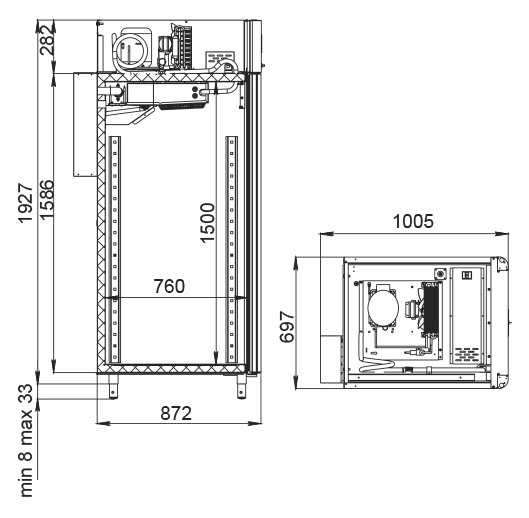 Каталог оборудования Холодильное оборудованиеШкафы холодильныеСпециализированные холодильные шкафыШкаф холодильный для вызревания сыра Polair CS107 Cheese черный, со стеклом Шкаф холодильный для вызревания сыра Polair CS107 Cheese черный, со стеклом Код товара: 062-626 Поделиться: WhatsAppTelegram СравнитьДобавить в КПВ избранное 0 389 300 ₽ В корзину 0 шт Под заказСамовывоз сегодня бесплатно Взять в кредит Купить в лизинг Получить консультацию в WhatsApp Описание Характеристики Отзывы 0 Инструкции 5 Шкаф холодильный для вызревания сыра Polair CS107 Cheese черный, со стеклом предназначен для создания оптимальных условий хранения и дозревания твердых и полутвердых сыров на предприятиях общественного питания и торговли. Монолитный цельнозаливной корпус снаружи изготовлен из стали с полимерным покрытием, внутри — из нержавеющей стали, дверь выполнена из стеклопакета. Оборудование рассчитано на работу при температуре окружающей среды до 40 °С. Особенности: Верхнее расположение агрегата для эффективного охлаждения Многофункциональная русифицированная панель управления с дисплеем диагональю 5" Возможность создания и сохранения собственных программ в памяти электронного блока Четыре перфорированные полки из нержавеющей стали для удобного размещения сыров Встроенный ультразвуковой увлажнитель (требуется подключение к системе очищенной воды и централизованной канализации) Распашная дверь с заливной теплоизоляцией и заменяемым уплотнителем с магнитной вставкой Встроенная ручка для удобства эксплуатации Отключаемая внутренняя LED-подсветка Штампованное углубление в дне корпуса для облегчения ухода Педаль для бесконтактного открывания двери Регулировка уровня влажности от 60% до 95% Максимальная нагрузка на полку — 40 кг Толщина стенок корпуса — 43 мм Polair CS107 Cheese черный, со стеклом — это высокотехнологичное оборудование, которое создает идеальные условия для дозревания и хранения твердых и полутвердых сыров. Надежная конструкция, продвинутые системы увлажнения и управления обеспечивают сохранение качества и вкуса сырной продукции, повышая эффективность работы предприятий общественного питания и торговли.Изображение товара, представленного на фото, может отличаться от его фактического вида. Показать все Габаритные размеры697×1005×1960 ммДиапазон рабочей температурыот -2 до +30 °CДлина697 ммШирина1005 ммВысота1960 ммОбъём700 лКол-во дверей1 Тип двериСтеклянная Количество полок4 штДопустимая нагрузка на полку40 кгУровень влажностиот 60 до 95 %Холодильный агрегатВстроенный Тип оттайкиАвтоматическая Тип охлажденияДинамическое ПодсветкаЕсть ХладагентR290 Вес нетто160 кгВес брутто190 кгБрендPolairВсе специализированные холодильные шкафы Из нержавейкиВсе специализированные холодильные шкафы Стеклянная дверь Оставить отзыв Еще никто не оставил отзыв на этот товар Схема POLAIR CS107 Cheese.jpgИнструкция на POLAIR CS107 Cheese.pdfБрошюра на POLAIR CS107 Cheese.pdfДекларация о соответствии.pdfСертификат соответствия.pdf Похожие товары Перейти в каталог Под заказ 248 490 ₽ Шкаф холодильный для вызревания мяса и сыра Carboma M700GN-1-G-MHC 9006 Под заказ 118 831 ₽ Шкаф холодильный HURAKAN HKN-MA100 для созревания мяса Под заказ 390 915 ₽ Шкаф холодильный для вызревания салями Polair CS107 Salami Под заказ 389 300 ₽ Шкаф холодильный для вызревания сыра Polair CS107 Cheese черный, со стеклом В наличии 405 365 ₽ Шкаф холодильный для хлебопекарных производст