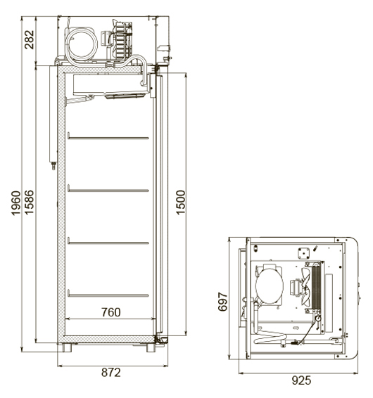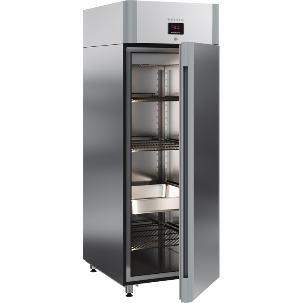 Каталог оборудования Холодильное оборудованиеШкафы холодильныеШкафы холодильные универсальные от -5 до +5 °СШкаф холодильный универсальный Polair CV107-Gm Alu Шкаф холодильный универсальный Polair CV107-Gm Alu Код товара: 062-610 Поделиться: WhatsAppTelegram СравнитьДобавить в КПВ избранное 0 149 175 ₽ В корзину 0 шт Под заказСамовывоз сегодня бесплатно Взять в кредит Купить в лизинг Получить консультацию в WhatsApp Описание Характеристики Отзывы 0 Инструкции 4 Шкаф холодильный универсальный Polair CV107-Gm Alu предназначен для демонстрации и надежного хранения продуктов на предприятиях общественного питания и торговли. Корпус шкафа цельнозаливной, выполнен из прочной стали с полимерным покрытием, что гарантирует высокую механическую прочность и длительный срок службы. Алюминиевые профили дверей и верхней панели подчеркивают современный, премиальный дизайн. Оборудование эффективно работает при температуре окружающей среды до 40 °С и влажности воздуха до 80%. Особенности модели: Многофункциональная контрольная панель (терморегулятор) для удобного управления параметрами. Жидкокристаллический дисплей, обеспечивающий чёткое отображение настроек и информации о работе шкафа. Клапан Шредера для удобного обслуживания холодильного контура. Распашной тип двери для легкого доступа к продуктам. Возможность изменить сторону открывания двери (при наличии опции), что делает установку более универсальной. Полностью интегрированные в профили дверей ручки, подчеркивающие стильный внешний вид и удобство использования. Встроенная светодиодная подсветка для отличной видимости содержимого шкафа. Надежный замок для защиты продуктов. Педаль для удобного открывания двери без использования рук. Высокая допустимая нагрузка на полку — до 40 кг, что позволяет хранить большие объемы продукции. Размер полки: GN 2/1 (530×650 мм), подходит для стандартных гастроемкостей. Толщина стенки корпуса — 43 мм, обеспечивающая отличную теплоизоляцию и снижение энергопотерь. Polair CV107-Gm Alu — это функциональный и стильный холодильный шкаф, который сочетает надежность, эргономичный дизайн и удобство эксплуатации. Использование прочных материалов и продуманная конструкция делают его идеальным решением для профессиональной кухни или торгового зала.Изображение товара, представленного на фото, может отличаться от его фактического вида. Показать все Габаритные размеры697×925×1960 ммДиапазон рабочей температурыот -5 до +5 °CДлина697 ммГлубина925 ммВысота695 ммОбъём700 лРазмер полки530×650 ммКоличество полок4 штКоличество дверей1 штТип оттайкиАвтоматическая Тип охлажденияДинамическое Тип управленияЭлектронное Материал корпусаНержавеющая сталь Тип двериМеталлическая ЗамокЕсть Способ открыванияРаспашные ХладагентR290 Холодильный агрегатВстроенный Расположение агрегатаВерхнее Потребление электроэнергии в сутки4,5 кВтПотребляемая мощность0,4 кВтНапряжение220 ВГабариты в упаковке800×1000×2150 ммВес нетто115 кгВес брутто140 кгБрендPolairВсе шкафы холодильные универсальные от -5 до +5 °С Из нержавейки Оставить отзыв Еще никто не оставил отзыв на этот товар Схема POLAIR CV107-Gm Alu.jpgИнструкция на POLAIR CV107-Gm Alu.pdfДекларация о соответствии.pdfСертификат соответствия.pdf Похожие товары Перейти в каталог В наличии 104 550 ₽ Шкаф холодильный универсальный Polair CV 105-G В наличии 127 177 ₽ Шкаф холодильный универсальный МХМ Капри 1,12 УСК купе Под за
