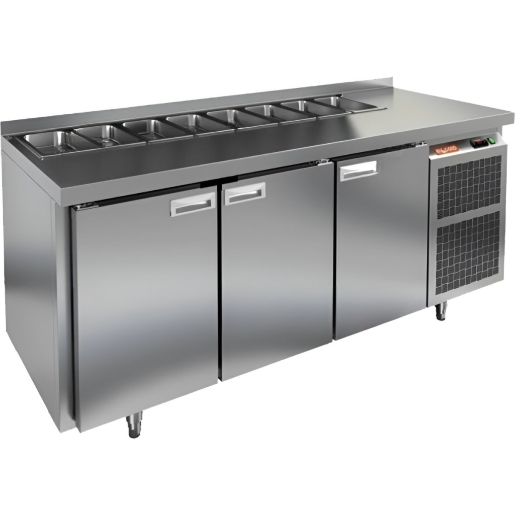 Каталог оборудования Холодильное оборудованиеСтолы охлаждаемыеСтолы холодильные для салатовСтол холодильный для салатов HiCold SL1-111GN (1/3) без крышки Стол холодильный для салатов HiCold SL1-111GN (1/3) без крышки Код товара: 064-517 Поделиться: WhatsAppTelegram СравнитьДобавить в КПВ избранное 0 163 612 ₽ В корзину 0 шт Под заказСамовывоз сегодня бесплатно Взять в кредит Купить в лизинг Получить консультацию в Max Описание Характеристики Отзывы 0 Инструкции 2 Стол холодильный для салатов HiCold SL1-111GN (1/3) без крышки предназначен для предприятий общественного питания и торговли. Он обеспечивает хранение и подготовку ингредиентов для пиццы, салатов и других блюд, а также охлаждение и кратковременное хранение скоропортящихся продуктов. Модель сочетает рабочую поверхность и холодильный объем, позволяя повару иметь все необходимые компоненты под рукой. Корпус и столешница выполнены из нержавеющей стали, обеспечивая надежность и долговечность. Особенности: Динамическая система охлаждения — равномерное распределение температуры внутри холодильного объема. Автоматическая оттайка — упрощает уход за оборудованием. Электронная панель управления — точная настройка температуры и режимов работы. 3 вместительные внутренние полки формата GN 1/1 — удобное хранение ингредиентов. Автоматические доводчики дверей с фиксатором открытого положения — комфорт и безопасность работы. Легкозаменяемые магнитные уплотнители — простота обслуживания. Открытая агрегатная часть — облегчает доступ для обслуживания. Регулируемые по высоте ножки — адаптация к рабочей поверхности. Столешница с бортом, толщина столешницы и теплоизоляции 50 мм — надежная защита и удобство работы. Размер полки: 530×325мм (GN 1/1) Максимальная глубина гастроемкостей: 100 мм HiCold SL1-111GN (1/3) без крышки — многофункциональный и надежный стол для профессиональной кухни. Обеспечивает удобство работы, эффективное охлаждение и безопасное хранение продуктов. Мобильная модификация с колёсами позволяет легко перемещать стол, что делает его идеальным для ресторанов, кафе и пиццерий.Изображение товара, представленного на фото, может отличаться от его фактического вида. Показать все Габаритные размеры1835×700×850 ммДиапазон рабочей температурыот +2 до +10 °CРасположение агрегатаБоковое Материал столешницыНержавеющая Тип столаС дверьми Тип двериГлухая Объём505 лКоличество дверей3 штТип гастроемкостейGN 1/3 Размер полки530×325 ммНапряжение220 ВМощность0,46 кВтТип охлажденияДинамический Тип оттайкиАвтоматическая СтолешницаС бортом Вес нетто120 кгВес брутто183 кгБрендHicold Оставить отзыв Еще никто не оставил отзыв на этот товар Паспорт на HICOLD SL1-111GN.pdfДекларация о соответствии.pdf Ранее просмотрено Под заказ 166 221 ₽ Стол холодильный для салатов HiCold SL1-11GN (1/3) М с крышкой Под заказ 201 682 ₽ Стол холодильный для салатов HiCold SL2-22GN (1/6) О без крышки