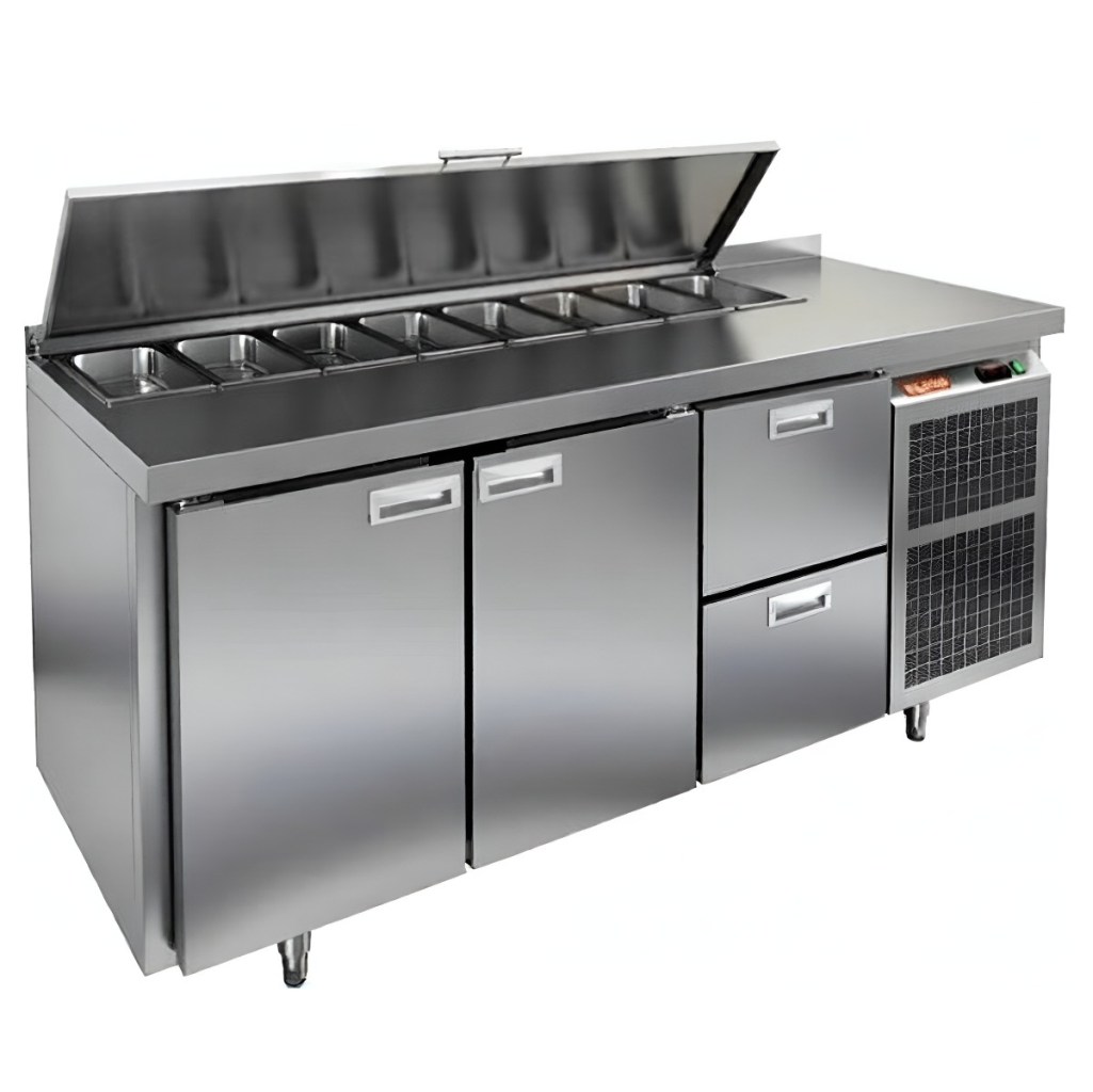 Каталог оборудования Холодильное оборудованиеСтолы охлаждаемыеСтолы холодильные для салатовСтол холодильный для салатов HiCold SL1-112GN (1/3) с крышкой Стол холодильный для салатов HiCold SL1-112GN (1/3) с крышкой Код товара: 064-841 Поделиться: WhatsAppTelegram СравнитьДобавить в КПВ избранное 0 198 892 ₽ В корзину 0 шт Под заказСамовывоз сегодня бесплатно Взять в кредит Купить в лизинг Получить консультацию в WhatsApp Описание Характеристики Отзывы 0 Инструкции 2 Стол холодильный для салатов HiCold SL1-112GN (1/3) предназначен для использования на предприятиях общественного питания и торговли. Он объединяет рабочую поверхность и охлаждаемый отсек, что делает его удобным решением для хранения, охлаждения и подготовки ингредиентов при приготовлении салатов, пиццы и других блюд. Такая конструкция позволяет повару работать быстрее и эффективнее, так как все необходимые продукты находятся под рукой. Корпус и столешница выполнены из прочной нержавеющей стали, устойчивой к коррозии и легко поддающейся санитарной обработке. Металлическая крышка защищает продукты от загрязнений и сохраняет их свежесть. Особенности модели: Электронная панель управления — точная настройка температурного режима. 2 глухие двери — удобный доступ к холодильному отсеку. 2 выдвижных ящика — быстрое размещение и замена продуктов. Вместимость салат-бара — до 8 гастроемкостей глубиной до 100 мм. Автоматические доводчики дверей с фиксацией в открытом положении. Легкозаменяемые магнитные уплотнители — надежная герметичность. Открытая агрегатная часть — быстрый доступ для обслуживания. Регулируемые по высоте ножки — устойчивость даже на неровном полу. Толщина столешницы, борта и теплоизоляции — 50 мм, что обеспечивает прочность и энергоэффективность конструкции. HiCold SL1-112GN (1/3) — практичное и удобное решение для профессиональной кухни, обеспечивающее удобную подготовку и хранение ингредиентов.Изображение товара, представленного на фото, может отличаться от его фактического вида. Показать все Габаритные размеры1835×700×850 ммДиапазон рабочей температурыот +2 до +10 °CРасположение агрегатаБоковое Материал столешницыНержавеющая Тип столаС дверьми и ящиками Тип двериГлухая Объём505 лКоличество дверей2 штТип гастроемкостейGN 1/3 Количество ящиков2 штРазмер полки530×325 ммНапряжение220 ВМощность0,46 кВтТип охлажденияДинамическое Тип оттайкиАвтоматическая СтолешницаС бортом Вес нетто120 кгВес брутто140 кгБрендHicold Оставить отзыв Еще никто не оставил отзыв на этот товар Паспорт на HICOLD SL1-112GN.pdfДекларация о соответствии.pdf Ранее просмотрено Под заказ 239 032 ₽ Стол холодильный для салатов HiCold SLE2-222GN (1/6) О с крышкой Под заказ 140 482 ₽ Стол холодильный для салатов HiCold SL2-11GN (1/6) без крышки Под заказ 204 921 ₽ Стол холодильный для салатов HiCold SL1-22GN (1/3) с крышкой Под заказ 259 282 ₽ Стол холодильный для салатов HiCold SL2-222GN (1/6) с крышкой