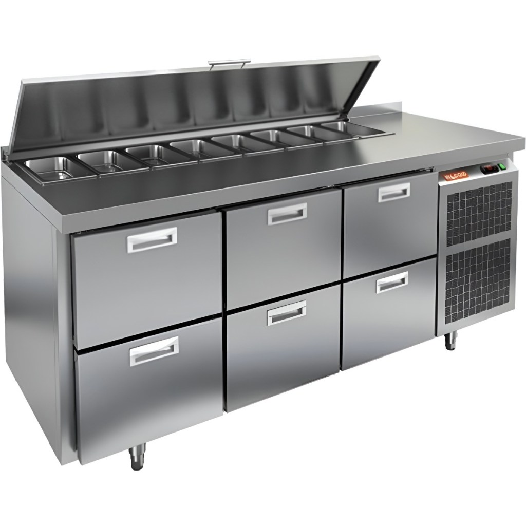 Каталог оборудования Холодильное оборудованиеСтолы охлаждаемыеСтолы холодильные для салатовСтол холодильный для салатов HiCold SL1-222GN (1/3) с крышкой Стол холодильный для салатов HiCold SL1-222GN (1/3) с крышкой Код товара: 064-844 Поделиться: WhatsAppTelegram СравнитьДобавить в КПВ избранное 0 260 092 ₽ В корзину 0 шт Под заказСамовывоз сегодня бесплатно Взять в кредит Купить в лизинг Получить консультацию в WhatsApp Описание Характеристики Отзывы 0 Инструкции 1 Стол холодильный для салатов HiCold SL1-222GN (1/3) предназначен для использования на предприятиях общественного питания и торговли. Он объединяет рабочую поверхность и охлаждаемый отсек, что делает его удобным решением для хранения, охлаждения и подготовки ингредиентов при приготовлении салатов, пиццы и других блюд. Такая конструкция позволяет повару работать быстрее и эффективнее, так как все необходимые продукты находятся под рукой. Корпус и столешница выполнены из прочной нержавеющей стали, устойчивой к коррозии и легко поддающейся санитарной обработке.Металлическая крышка защищает продукты от загрязнений и сохраняет их свежесть. Особенности модели: Электронная панель управления — точная настройка температурного режима. 6 выдвижных ящика — быстрое размещение и замена продуктов. Вместимость салат-бара — до 8 гастроемкостей глубиной до 100 мм. Автоматические доводчики — комфорт при загрузке/выгрузке. Легкозаменяемые магнитные уплотнители — надежная герметичность. Открытая агрегатная часть — быстрый доступ для обслуживания. Регулируемые по высоте ножки — устойчивость даже на неровном полу. Толщина столешницы, борта и теплоизоляции — 50 мм, что обеспечивает прочность и энергоэффективность конструкции. HiCold SL1-222GN (1/3) — практичное и удобное решение для профессиональной кухни, обеспечивающее удобную подготовку и хранение ингредиентов.Изображение товара, представленного на фото, может отличаться от его фактического вида. Показать все Габаритные размеры1835×700×850 ммДиапазон рабочей температурыот +2 до +10 °CРасположение агрегатаБоковое Материал столешницыНержавеющая Тип столаС ящиками Объём505 лТип гастроемкостейGN 1/3 Количество ящиков6 штРазмер полки530×325 ммНапряжение220 ВМощность0,46 кВтТип охлажденияДинамическое Тип оттайкиАвтоматическая СтолешницаС бортом Габариты в упаковке2000×850×1000 ммВес нетто120 кгВес брутто140 кгБрендHicold Оставить отзыв Еще никто не оставил отзыв на этот товар Декларация о соответствии.pdf Ранее просмотрено Под заказ 163 162 ₽ Стол холодильный для салатов HiCold SL1-111SN (1/3) О без крышки