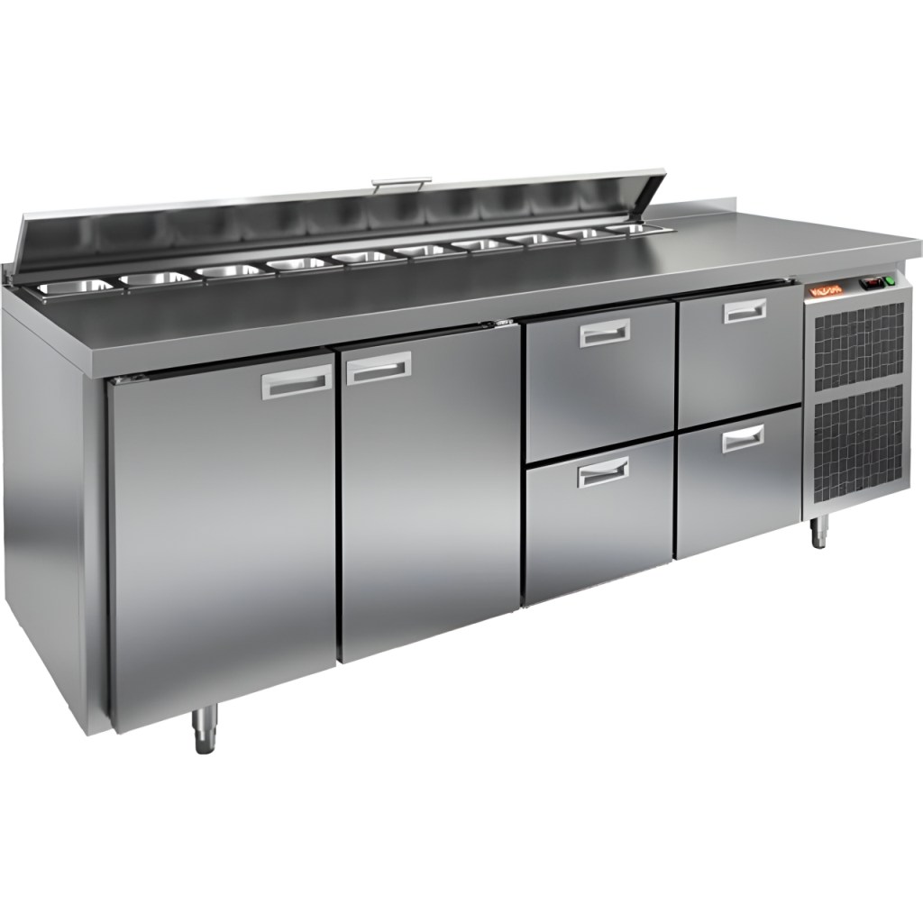 Каталог оборудования Холодильное оборудованиеСтолы охлаждаемыеСтолы холодильные для салатовСтол холодильный для салатов HiCold SL1-332GN (1/3) с крышкой Стол холодильный для салатов HiCold SL1-332GN (1/3) с крышкой Код товара: 064-851 Поделиться: WhatsAppTelegram СравнитьДобавить в КПВ избранное 0 290 692 ₽ В корзину 0 шт Под заказСамовывоз сегодня бесплатно Взять в кредит Купить в лизинг Получить консультацию в WhatsApp Описание Характеристики Отзывы 0 Инструкции 1 Стол холодильный для салатов HiCold SL1-332GN (1/3) предназначен для использования на предприятиях общественного питания и торговли. Он объединяет рабочую поверхность и охлаждаемый отсек, что делает его удобным решением для хранения, охлаждения и подготовки ингредиентов при приготовлении салатов, пиццы и других блюд. Такая конструкция позволяет повару работать быстрее и эффективнее, так как все необходимые продукты находятся под рукой. Корпус и столешница выполнены из прочной нержавеющей стали, устойчивой к коррозии и легко поддающейся санитарной обработке. Металлическая крышка защищает продукты от загрязнений и сохраняет их свежесть. Особенности модели: Электронная панель управления — точная настройка температурного режима. 8 выдвижных ящика — быстрое размещение и замена продуктов. Вместимость салат-бара — до 8 гастроемкостей глубиной до 100 мм. Автоматические доводчики — комфорт при загрузке/выгрузке. Легкозаменяемые магнитные уплотнители — надежная герметичность. Открытая агрегатная часть — быстрый доступ для обслуживания. Регулируемые по высоте ножки — устойчивость даже на неровном полу. Толщина столешницы, борта и теплоизоляции — 50 мм, что обеспечивает прочность и энергоэффективность конструкции. HiCold SL1-332GN (1/3) — практичное и удобное решение для профессиональной кухни, обеспечивающее удобную подготовку и хранение ингредиентов.Изображение товара, представленного на фото, может отличаться от его фактического вида. Показать все Габаритные размеры1835×700×850 ммДиапазон рабочей температурыот +2 до +10 °CРасположение агрегатаБоковое Материал столешницыНержавеющая Тип столаС дверьми и ящиками Тип двериГлухая Объём505 лКоличество дверей2 штТип гастроемкостейGN 1/3 Количество ящиков6 штРазмер полки530×325 ммНапряжение220 ВМощность0,46 кВтТип охлажденияДинамическое Тип оттайкиАвтоматическая СтолешницаС бортом Габариты в упаковке2000×850×1000 ммВес нетто120 кгВес брутто140 кгБрендHicold Оставить отзыв Еще никто не оставил отзыв на этот товар Декларация о соответствии.pdf Ранее просмотрено Под заказ 176 082 ₽ Стол холодильный среднетемпературный Abat СХС-60-02 без борта (дверь-стекло, дверь-стекло, дверь-стекло) Под заказ 294 562 ₽ Стол холодильный для салатов HiCold SLE1-2222GN (1/3) с крышкой Под заказ 198 892 ₽ Стол холодильный для салатов HiCold SL1-112GN (1/3) с крышкой Под заказ 239 032 ₽ Стол холодильный для салатов HiCold SLE2-222GN (1/6) О с крышкой Под заказ 140 482 ₽ Стол холодильный для салатов HiCold SL2-11GN (1/6) без крышки Под заказ 204 921 ₽ Стол холодильный для салатов HiCold SL1-22GN (1/3) с крышкой Под заказ 259 282 ₽ Стол холодильный для салатов HiCold SL2-222GN (1/6) с крышкой