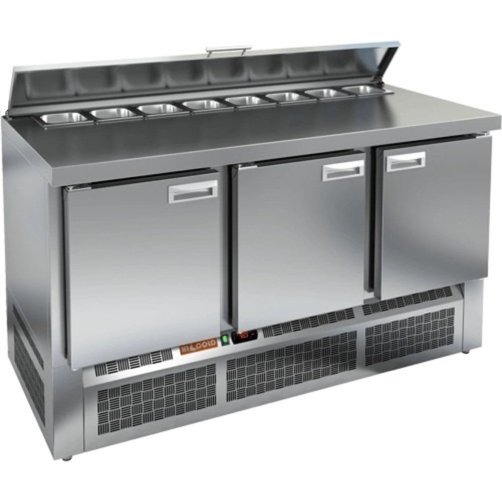 Каталог оборудования Холодильное оборудованиеСтолы охлаждаемыеСтолы холодильные для салатовСтол холодильный для салатов HiCold SLE2-111SN (1/6) О с крышкой Стол холодильный для салатов HiCold SLE2-111SN (1/6) О с крышкой Код товара: 064-872 Поделиться: WhatsAppTelegram СравнитьДобавить в КПВ избранное 0 146 782 ₽ В корзину 0 шт Под заказСамовывоз сегодня бесплатно Взять в кредит Купить в лизинг Получить консультацию в WhatsApp Описание Характеристики Отзывы 0 Инструкции 2 Стол холодильный для салатов HiCold SLE2-111SN (1/6) О с крышкой предназначен для предприятий общественного питания и торговли. Он используется для хранения, охлаждения и обработки ингредиентов, применяемых при приготовлении салатов, пиццы, закусок и других блюд. Модель объединяет удобную рабочую поверхность и охлаждаемый отсек, позволяя повару иметь все необходимое под рукой. Конструкция выполнена из прочной нержавеющей стали, устойчивой к коррозии и легкой в уходе. Металлическая крышка защищает продукты от загрязнений и сохраняет их свежесть. Особенности модели: Электронная панель управления — точная настройка температуры и контроль за режимами работы. 3 вместительные внутренние полки — рациональное распределение хранения. Салат-бар вмещает 8 гастроемкостей — оптимальная организация ингредиентов. Автоматические доводчики дверей с фиксацией в открытом положении — удобно при загрузке и выгрузке продуктов. Магнитные уплотнители — легко заменяются, обеспечивая герметичность. Открытая агрегатная часть — упрощает техническое обслуживание. Регулируемые по высоте ножки — позволяют установить оборудование на любой поверхности. Глубина гастроемкостей — до 100 мм. Толщина столешницы и теплоизоляции — по 50 мм, что способствует сохранению холода и прочности конструкции. HiCold SLE2-111SN (1/6) О с крышкой — это функциональный и надёжный салатный стол, сочетающий в себе удобство работы и эффективное охлаждение. Отличное решение для кухни с интенсивной нагрузкой. Изображение товара, представленного на фото, может отличаться от его фактического вида. Показать все Габаритные размеры1485×600×850 ммДиапазон рабочей температурыот +2 до +10 °CРасположение агрегатаНижнее Материал столешницыНержавеющая Тип столаС дверьми Тип двериГлухая Объём320 лКоличество дверей3 штТип гастроемкостейGN 1/6 Размер полки430×325 ммНапряжение220 ВМощность0,22 кВтТип охлажденияДинамическое Тип оттайкиАвтоматическая СтолешницаБез борта Габариты в упаковке1700×750×1080 ммВес нетто88 кгВес брутто148 кгБрендHicold Оставить отзыв Еще никто не оставил отзыв на этот товар Паспорт на HICOLD SLE2-111SN О.pdfДекларация о соответствии.pdf Ранее просмотрено Под заказ 182 691 ₽ Стол холодильный для салатов HiCold SLE2-22GN (1/6) без крышки Под заказ 125 182 ₽ Стол холодильный для салатов HiCold SLE3-11GN О с крышкой Под заказ 184 581 ₽ Стол холодильный для салатов HiCold SLE2-22SN (1/6) с крышкой Под заказ 146 332 ₽ Стол холодильный для салатов HiCold SLE2-11GN (1/6) М с крышкой Под заказ 208 342 ₽ Стол холодильный для салатов HiCold SLE1-122SN (1/3) с крышкой Под заказ 208 792 ₽ Стол холодильный для салатов HiCold SLE1-122GN (1/3) с крышкой