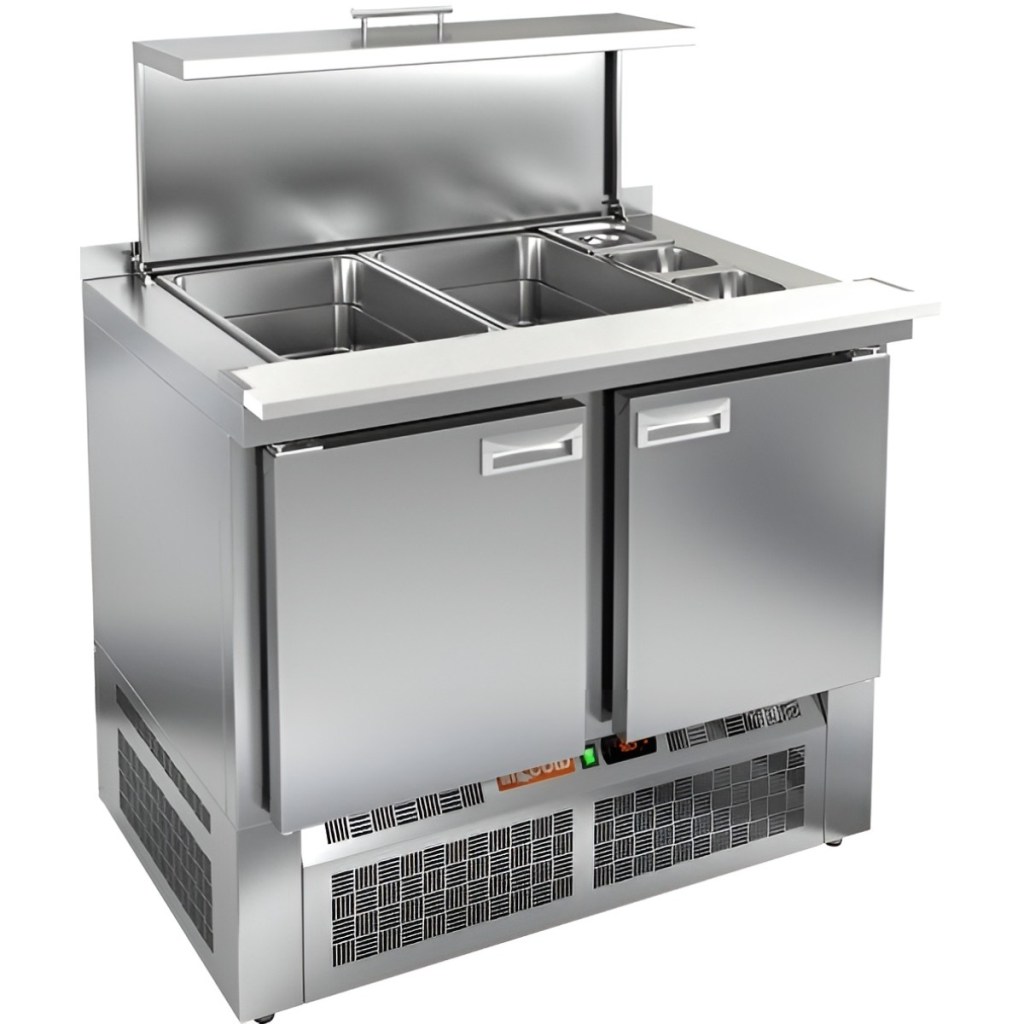 Модель сочетает в себе рабочую поверхность и охлаждаемый объём, что обеспечивает эффективную организацию кухонного пространства. Корпус изготовлен из нержавеющей стали, а столешница выполнена из прочного полипропилена, что делает конструкцию гигиеничной, устойчивой к влаге и удобной для ежедневной эксплуатации. Металлическая крышка защищает продукты от загрязнений и сохраняет их свежесть.
