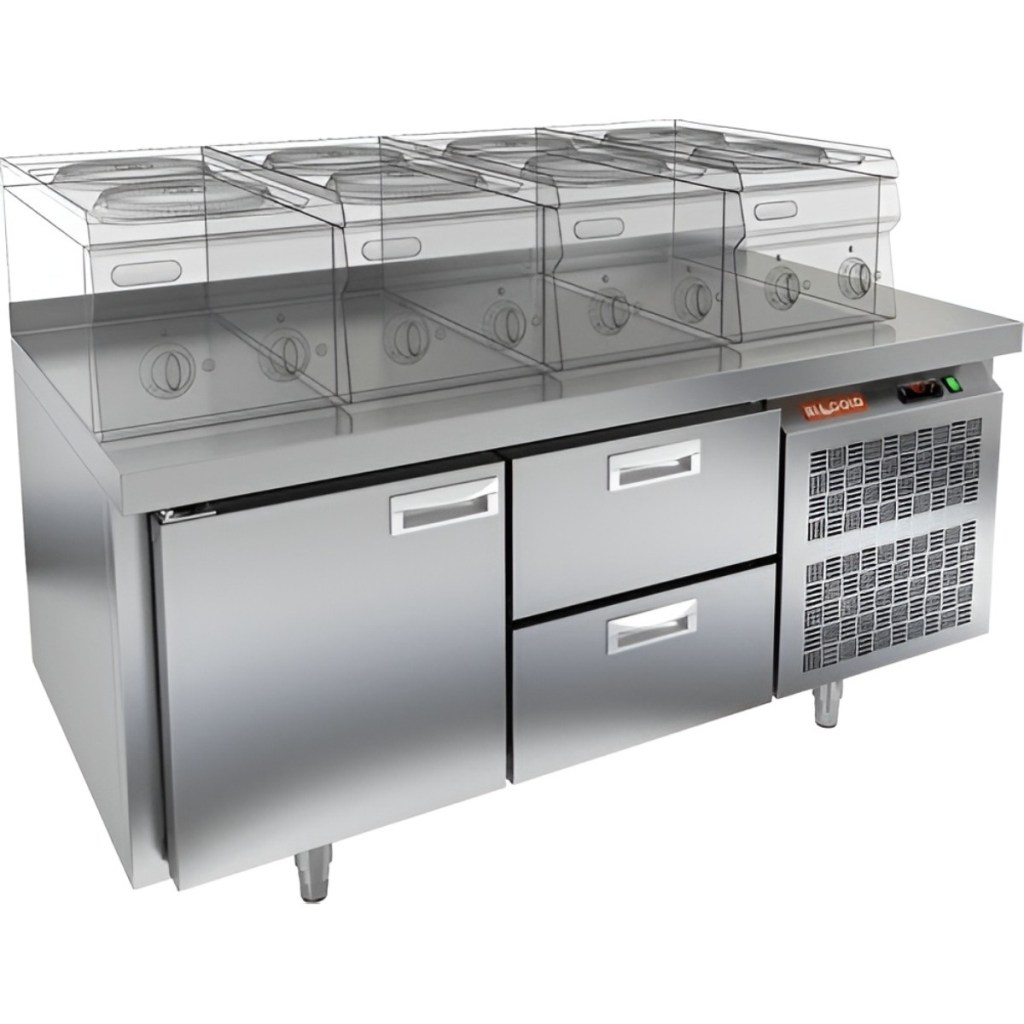 Каталог оборудования Холодильное оборудованиеСтолы охлаждаемыеСтолы холодильные под тепловое оборудованиеСтол охлаждаемый HiCold SN 12/TN LT под тепловое оборудование Стол охлаждаемый HiCold SN 12/TN LT под тепловое оборудование Код товара: 065-536 Поделиться: WhatsAppTelegram СравнитьДобавить в КПВ избранное 0 141 561 ₽ В корзину 0 шт Под заказСамовывоз сегодня бесплатно Взять в кредит Купить в лизинг Получить консультацию в WhatsApp Описание Характеристики Отзывы 0 Инструкции 2 Стол охлаждаемый HiCold SN 12/TN LT под тепловое оборудование предназначен для обработки ингредиентов и временного хранения скоропортящихся продуктов и напитков на предприятиях общественного питания и торговли. Устройство совмещает функции рабочей поверхности и холодильной камеры. Столешница рассчитана на установку теплового оборудования: под рабочей поверхностью встроен ДСП-лист, который укрепляет конструкцию и препятствует проникновению тепла внутрь. Такое решение обеспечивает дополнительную жесткость, позволяет рационально использовать рабочее пространство и повышает эффективность работы на кухне. Особенности: 1 распашная дверь — обеспечивает удобный доступ к внутреннему пространству. 2 выдвижных ящика — обеспечивают удобный доступ к продуктам и инвентарю Автоматические доводчики дверей с фиксатором открытого положения повышают эргономику и способствуют сохранению холода. Легкозаменяемые магнитные уплотнители обеспечивают плотное прилегание дверей и лёгкость в обслуживании. Открытая агрегатная часть упрощает доступ к компрессору при техническом обслуживании. Регулируемые по высоте ножки позволяют установить стол на неровной поверхности. Толщина столешницы — 50 мм обеспечивает прочность рабочей поверхности. Высота борта — 50 мм предотвращает падение продуктов и инвентаря. Толщина теплоизоляции — 50 мм способствует энергоэффективности и стабильному температурному режиму. HiCold SN 12/TN LT — это надёжное и удобное оборудование, сочетающее охлаждение и рабочее пространство. Благодаря продуманной конструкции и совместимости с гастроемкостями GN 1/1, стол станет практичным решением для кухни любого профессионального уровня.Изображение товара, представленного на фото, может отличаться от его фактического вида. Показать все Габаритные размеры1390×600×675 ммДиапазон рабочей температурыот -2 до +10 °CМатериал столешницыНержавеющая Расположение агрегатаБоковое Объём220 лТип столаС дверьми и ящиками Тип двериГлухая Количество дверей1 штКоличество ящиков2 штРазмер полки530×325 ммНапряжение220 ВМощность0,22 кВтТип охлажденияДинамический Тип оттайкиАвтоматическая СтолешницаС бортом Габариты в упаковке1550×750×850 ммВес нетто125 кгВес брутто147 кгБрендHicold Оставить отзыв Еще никто не оставил отзыв на этот товар Паспорт на HICOLD SN 12TN LT.pdfДекларация о соответствии.pdf Похожие товары Перейти в каталог В наличии 77 661 ₽ Стол холодильный среднетемпературный HiCold GN 11/TN W Под заказ 125 670 ₽ Стол холодильный среднетемпературный Abat СХС-70-01 с бортом (дверь, дверь) С этим товаром покупают В наличии 201 690 ₽ Шкаф морозильный Полюс Carboma F1400 В наличии 195 030 ₽ Плита индукционная Аbat КИП-47Н Ранее просмотрено Под заказ 186 900 ₽ Витрина кондитерская Carboma KC78-130 VV 0,9-1 (9005)