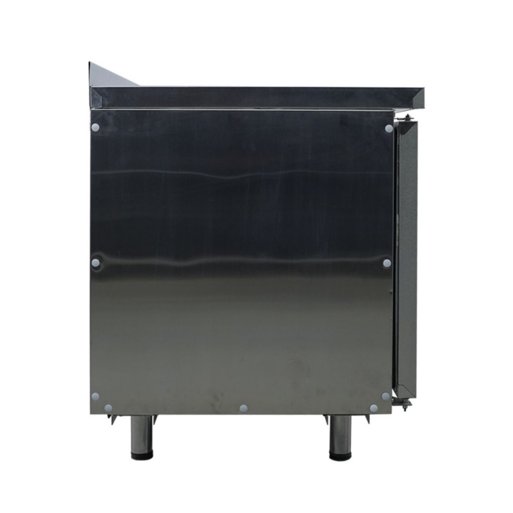 Каталог оборудования Холодильное оборудованиеСтолы охлаждаемыеСтолы холодильные среднетемпературныеСтол холодильный среднетемпературный Ангара СХБ 0,9-600 Стол холодильный среднетемпературный Ангара СХБ 0,9-600 Код товара: 066-346 Поделиться: WhatsAppTelegram СравнитьДобавить в КПВ избранное 0 103 486 ₽ В корзину 0 шт Под заказСамовывоз сегодня бесплатно Взять в кредит Купить в лизинг Получить консультацию в WhatsApp Описание Характеристики Отзывы 0 Стол холодильный среднетемпературный Ангара СХБ 0,9-600 предназначен для обработки ингредиентов и кратковременного хранения скоропортящихся продуктов и напитков на предприятиях общественного питания и торговли. Модель сочетает компактные размеры, функциональность и надёжность, обеспечивая удобство работы на кухне. Особенности модели: Электронное управление — интуитивно понятная панель позволяет точно регулировать температурный режим и контролировать работу устройства. Корпус и столешница из нержавеющей стали — обеспечивают долговечность, устойчивость к коррозии и лёгкость в уходе. Одна дверца и одна полка 430×325 мм — обеспечивают удобный доступ к продуктам и эффективное использование внутреннего пространства. Регулируемые ножки — позволяют адаптировать высоту стола под индивидуальные условия рабочей зоны. Автоматические доводчики дверей с фиксацией — двери закрываются плавно и остаются зафиксированными в открытом положении при необходимости. Съёмные магнитные уплотнители — упрощают чистку и замену, поддерживая герметичность и эффективность охлаждения. Диапазон температур: -2…+10 °C / +2…+10 °C, что позволяет использовать стол как для охлаждённых, так и для быстро портящихся продуктов. Холодильный стол Ангара СХБ 0,9-600 — это практичное и надёжное решение для профессиональных кухонь и торговых точек. Совмещение эргономичной конструкции, долговечных материалов и точного электронного контроля температуры обеспечивает удобство эксплуатации и эффективное хранение продуктов в оптимальных условиях.Изображение товара, представленного на фото, может отличаться от его фактического вида. Показать все Габаритные размеры900×600×850 ммДиапазон рабочей температурыот -2 до +10 °CРасположение агрегатаБоковое Материал столешницыНержавеющая Тип столаС дверьми Тип двериГлухая Объём130 лКоличество дверей1 штКоличество полок1 штРазмер полки430×325 ммНапряжение220 ВМощность0,15 кВтТип охлажденияДинамическое Тип оттайкиАвтоматическая СтолешницаС бортом БрендАнгараВсе нержавеющие холодильные столы Все холодильные столы с бортом Оставить отзыв Еще никто не оставил отзыв на этот товар Ранее просмотрено Под заказ 340 680 ₽ Моноблок холодильный среднетемпературный Арктика ММС 450 (с зимним комплектом)