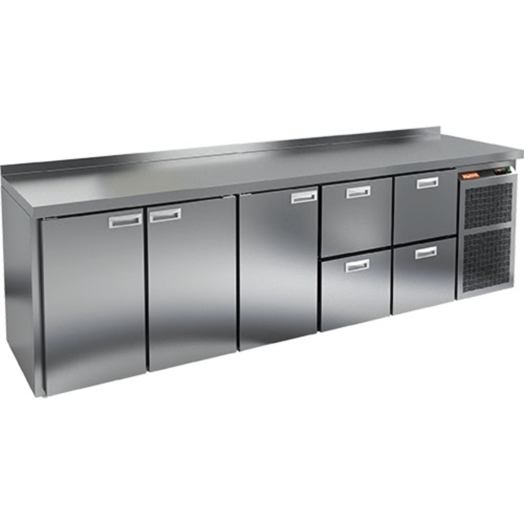 Каталог оборудования Холодильное оборудованиеСтолы охлаждаемыеСтолы холодильные среднетемпературныеСтол холодильный среднетемпературный HiCold GN 11122 BR2 TN Стол холодильный среднетемпературный HiCold GN 11122 BR2 TN Код товара: 062-293 Поделиться: WhatsAppTelegram СравнитьДобавить в КПВ избранное 0 260 901 ₽ В корзину 0 шт В наличииСамовывоз сегодня бесплатно Взять в кредит Купить в лизинг Получить консультацию в Max Описание Характеристики Отзывы 0 Стол холодильный среднетемпературный HiCold GN 11122 BR2 TN предназначен для обработки ингредиентов при приготовлении блюд и кратковременного хранения скоропортящихся продуктов и напитков на предприятиях общественного питания и торговли. Модель оснащена удобной электронной панелью управления. Корпус и столешница выполнены из нержавеющей стали, что обеспечивает долговечность и гигиеничность. В комплект входят 3 полки, которые позволяют удобно организовать внутреннее пространство. Особенности: 3 распашные двери для удобного доступа к камере 4 выдвижные секции для дополнительного удобства хранения и сортировки продуктов Автоматические доводчики дверей с фиксатором открытого положения повышают комфорт и безопасность эксплуатации Легкозаменяемые магнитные уплотнители обеспечивают надежную герметичность и простоту обслуживания Регулируемые по высоте ножки гарантируют устойчивость на любой поверхности Толщина столешницы — 50 мм для прочной и устойчивой рабочей поверхности Высота борта — 50 мм предотвращает падение продуктов и пролив жидкостей Толщина теплоизоляции — 50 мм обеспечивает эффективное сохранение холода Рабочий температурный диапазон — от +12 до +37 °C подходит для различных условий эксплуатации HiCold GN 11122 BR2 TN — многофункциональное и надежное решение для профессиональных кухонь и торговых точек, обеспечивающее удобство в работе и эффективное хранение продуктов. Изображение товара, представленного на фото, может отличаться от его фактического вида. Показать все Габаритные размеры2840×700×850 ммДиапазон рабочей температурыот -2 до +10 °CРасположение агрегатаБоковое Материал столешницыНержавеющая Тип столаС дверьми и ящиками Тип двериГлухая Объём960 лКоличество дверей3 штКоличество полок3 штКоличество ящиков4 штРазмер полки530×325 ммНапряжение220 ВМощность0,48 кВтТип охлажденияДинамический Тип оттайкиАвтоматическая СтолешницаС бортом Вес нетто268 кгВес брутто298 кгБрендHicoldВсе холодильные столы HicoldВсе нержавеющие холодильные столы Все холодильные столы с бортом Оставить отзыв Еще никто не оставил отзыв на этот товар Похожие товары Перейти в каталог Под заказ 79 911 ₽ Стол холодильный среднетемпературный HiCold GN 1/TN W Под заказ 107 046 ₽ Стол холодильный среднетемпературный Abat СХС-70 с бортом (дверь) С этим товаром покупают В наличии 93 502 ₽ Шкаф холодильный Полюс Carboma R560 В наличии 58 095 ₽ Витрина холодильная для ингредиентов HICOLD VRTU 1835 1/3 Ранее просмотрено Под заказ 249 292 ₽ Стол холодильный среднетемпературный HiCold GNE 2221/TN