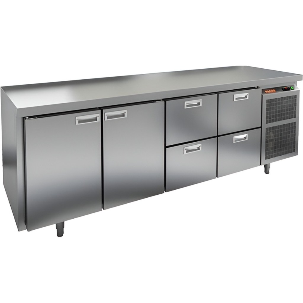 Каталог оборудования Холодильное оборудованиеСтолы охлаждаемыеСтолы холодильные среднетемпературныеСтол холодильный среднетемпературный HiCold GN 1122/TN О Стол холодильный среднетемпературный HiCold GN 1122/TN О Код товара: 065-459 Поделиться: WhatsAppTelegram СравнитьДобавить в КПВ избранное 0 228 591 ₽ В корзину 0 шт Под заказСамовывоз сегодня бесплатно Взять в кредит Купить в лизинг Получить консультацию в Max Описание Характеристики Отзывы 0 Инструкции 2 Стол холодильный среднетемпературный HiCold GN 1122/TN О предназначен для хранения продуктов и подготовки ингредиентов в заведениях общественного питания и торговли. Удобная электронная панель управления, прочный корпус и продуманная конструкция делают эту модель оптимальным выбором для профессиональной кухни. В комплект входят 2 полки размером 530×325 мм. Ключевые особенности: 2 распашные двери и 4 выдвижные секции — рациональная организация внутреннего пространства и быстрый доступ к содержимому. Электронная панель управления — интуитивное управление температурой. Автоматические доводчики дверей с фиксаторами открытого положения — удобно при частом использовании. Легкозаменяемые магнитные уплотнители — надёжная герметизация и лёгкое техническое обслуживание. Регулируемые по высоте ножки — устойчивость на любой поверхности. Корпус и столешница из нержавеющей стали — прочность, долговечность и соответствие санитарным требованиям. Столешница без борта, толщина 50 мм — увеличенная рабочая площадь, устойчивая к нагрузкам и механическому воздействию. Толщина теплоизоляции — 50 мм — отличная теплоизоляция и прочность. Устойчив к внешним условиям при температуре окружающей среды от 12 до 37 °C. HiCold GN 1122/TN О — это надёжный и функциональный холодильный стол, разработанный для интенсивной профессиональной эксплуатации. Удачное сочетание дверей и выдвижных секций делает его универсальным решением для хранения различных категорий продуктов, обеспечивая удобство работы и соблюдение температурного режима. Изображение товара, представленного на фото, может отличаться от его фактического вида. Показать все Габаритные размеры2280×700×850 ммДиапазон рабочей температурыот -2 до +10 °CРасположение агрегатаБоковое Материал столешницыНержавеющая Тип столаС дверьми и ящиками Тип двериГлухая Объём660 лКоличество дверей2 штКоличество полок2 штКоличество ящиков4 штРазмер полки530×325 ммНапряжение220 ВМощность0,48 кВтТип охлажденияДинамический Тип оттайкиАвтоматическая СтолешницаБез борта Габариты в упаковке2420×850×1000 ммВес нетто150 кгВес брутто190 кгБрендHicoldВсе холодильные столы HicoldВсе нержавеющие холодильные столы Все холодильные столы без борта Оставить отзыв Еще никто не оставил отзыв на этот товар Паспорт на HICOLD GN 1122/TN О.pdfДекларация о соответствии.pdf Похожие товары Перейти в каталог Под заказ 197 991 ₽ Стол холодильный среднетемпературный HiCold GNG 1111 HT В наличии 139 401 ₽ Стол холодильный среднетемпературный HiCold GN 1111 BR2 TN В наличии 113 121 ₽ Стол холодильный среднетемпературный HiCold GN 1111/TN W В наличии 119 067 ₽ Стол холодильный среднетемпературный Polair TM4GN-GС С этим товаром покупают Под заказ 130 257 ₽ Шкаф комбинированный Carboma RF 700 Под заказ 68 464 ₽ Витрина холодильная для ингредиентов HICOLD VRX 1600 1/3 Ранее просмотрено Под заказ 161 091 ₽ Стол холодильный среднетемпературный HiCold SNG 111 HT О