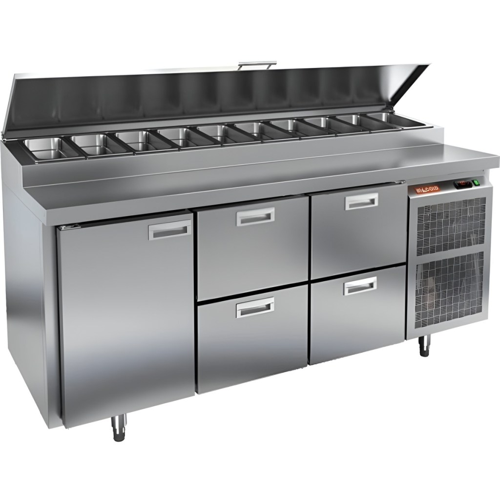 Каталог оборудования Холодильное оборудованиеСтолы охлаждаемыеСтолы холодильные для пиццыСтол холодильный для пиццы HiCold PZ1-122N (1/3) Стол холодильный для пиццы HiCold PZ1-122N (1/3) Код товара: 064-709 Поделиться: WhatsAppTelegram СравнитьДобавить в КПВ избранное 0 275 572 ₽ В корзину 0 шт Под заказСамовывоз сегодня бесплатно Взять в кредит Купить в лизинг Получить консультацию в WhatsApp Описание Характеристики Отзывы 0 Стол холодильный для пиццы HiCold PZ1-122GN (1/3) — профессиональное оборудование для предприятий общественного питания и торговли. Он сочетает рабочую поверхность для раскатки теста и подготовки ингредиентов с охлаждаемым блоком для кратковременного хранения скоропортящихся продуктов и напитков. Такое решение обеспечивает максимальное удобство — все необходимые компоненты всегда находятся под рукой. Корпус и столешница выполнены из нержавеющей стали, что гарантирует долговечность, устойчивость к повреждениям и лёгкость ухода. Основные особенности: Нержавеющая столешница и корпус — прочность, гигиеничность и лёгкость очистки Динамическая система охлаждения — равномерное распределение холода Автоматическая оттайка — стабильная работа без образования наледи Электронная панель управления — точная настройка температуры 1 дверца и 4 выдвижных ящика — удобная организация внутреннего пространства Автоматические доводчики дверцы и ящиков — комфорт при работе Легкозаменяемые магнитные уплотнители — поддержание герметичности Открытая агрегатная часть — лёгкий доступ для обслуживания Регулируемые по высоте ножки — установка на неровных поверхностях Максимальная глубина гастроёмкостей: 100 мм Глубина рабочей поверхности: 324 мм Толщина столешницы и теплоизоляции: 50 мм Вместимость салат-бара: до 10 гастроёмкостей Стол холодильный HiCold PZ1-122GN (1/3) — надёжный и функциональный холодильный стол для пиццы и салатов. Продуманная организация хранения и удобство эксплуатации обеспечивают быстрый доступ к ингредиентам и высокую производительность на профессиональной кухне.Изображение товара, представленного на фото, может отличаться от его фактического вида. Показать все Габаритные размеры1835×700×1000 ммДиапазон рабочей температурыот +2 до +10 °CРасположение агрегатаБоковое Материал столешницыНержавеющая Тип столаС дверьми и ящиками Тип двериГлухая Объём505 лТип гастроемкостейGN 1/3 Количество дверей1 штКоличество ящиков4 штРазмер полки530×325 ммНапряжение220 ВМощность0,5 кВтТип охлажденияДинамическое Тип оттайкиАвтоматическая Габариты в упаковке2000×850×1140 ммВес нетто172 кгВес брутто200 кгБрендHicoldВсе холодильные столы для пиццы HicoldВсе нержавеющие холодильные столы для пиццы Оставить отзыв Еще никто не оставил отзыв на этот товар Ранее просмотрено Под заказ 278 361 ₽ Стол холодильный для пиццы HiCold PZE1-222GN (1/3) Под заказ 434 242 ₽ Стол холодильный для пиццы HiCold PZ2-3333GN (1/6) Под заказ 217 161 ₽ Стол холодильный для пиццы HiCold PZE2-211/GN (1/6H) Под заказ 242 721 ₽ Стол холодильный для пиццы HiCold PZE2-1111/GN (1/6) М Под заказ 342 622 ₽ Стол холодильный для пиццы HiCold PZE1-2222GN (1/3) Под заказ 260 272 ₽ Стол холодильный для пиццы HiCold PZ1-113GN (1/3H)
