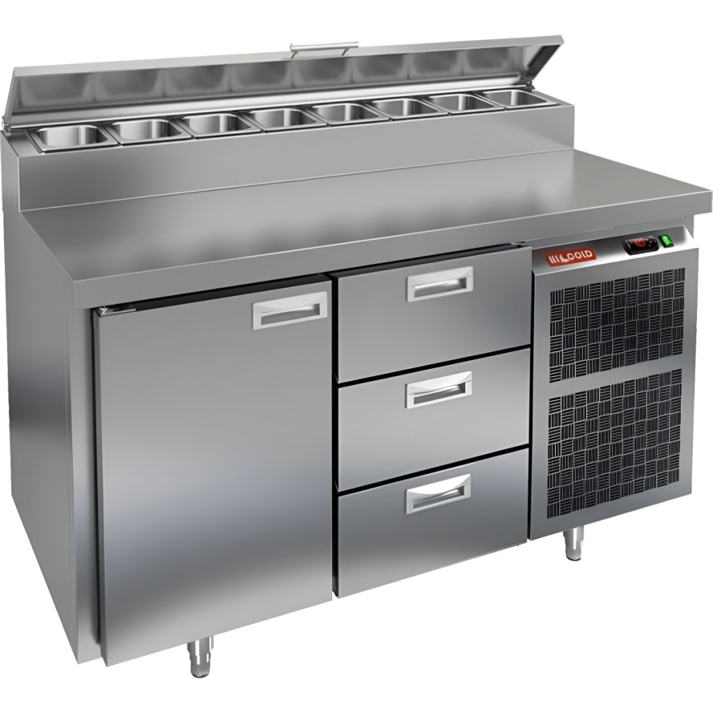 Каталог оборудования Холодильное оборудованиеСтолы охлаждаемыеСтолы холодильные для пиццыСтол холодильный для пиццы HiCold PZ1-13/GN (1/3) Стол холодильный для пиццы HiCold PZ1-13/GN (1/3) Код товара: 064-702 Поделиться: WhatsAppTelegram СравнитьДобавить в КПВ избранное 0 229 941 ₽ В корзину 0 шт Под заказСамовывоз сегодня бесплатно Взять в кредит Купить в лизинг Получить консультацию в WhatsApp Описание Характеристики Отзывы 0 Инструкции 2 Стол холодильный для пиццы HiCold PZ1-13/GN (1/3) — профессиональное решение для предприятий общественного питания и торговли. Он объединяет удобную рабочую поверхность для раскатки теста и подготовки ингредиентов с охлаждаемым блоком для хранения скоропортящихся продуктов и напитков. Корпус и столешница выполнены из нержавеющей стали, обеспечивающей прочность, долговечность и лёгкость ухода. Основные особенности: Нержавеющая столешница и корпус — прочность, гигиеничность и лёгкость очистки Динамическая система охлаждения — равномерное распределение холода Автоматическая оттайка — стабильная работа без образования наледи Электронная панель управления — точная настройка температуры 1 дверца и 3 выдвижных ящика — удобная организация внутреннего пространства 1 вместительная полка формата GN 1/1 (размер 530×325 мм) Автоматические доводчики дверей с фиксатором открытого положения — комфорт при работе Легкозаменяемые магнитные уплотнители — поддержание герметичности Открытая агрегатная часть — удобный доступ для обслуживания Регулируемые по высоте ножки — установка на неровных поверхностях Максимальная глубина гастроёмкостей: 100 мм Глубина рабочей поверхности: 324 мм Толщина столешницы и теплоизоляции: 50 мм Вместимость салат-бара: до 7 гастроёмкостей Стол холодильный HiCold PZ1-13/GN (1/3) — это компактный и функциональный стол для пиццы и салатов. Он сочетает рабочую поверхность, охлаждаемый блок и защиту ингредиентов, обеспечивая удобство, высокую производительность и долговечность в профессиональной кухне.Изображение товара, представленного на фото, может отличаться от его фактического вида. Показать все Габаритные размеры1390×700×1000 ммДиапазон рабочей температурыот +2 до +10 °CРасположение агрегатаБоковое Материал столешницыНержавеющая Тип столаС дверьми и ящиками Тип двериГлухая Объём350 лТип гастроемкостейGN 1/3 Количество дверей1 штКоличество ящиков3 штРазмер полки530×325 ммНапряжение220 ВМощность0,22 кВтТип охлажденияДинамическое Тип оттайкиАвтоматическая Габариты в упаковке1490×800×1080 ммВес нетто141 кгВес брутто161 кгБрендHicoldВсе холодильные столы для пиццы HicoldВсе нержавеющие холодильные столы для пиццы Оставить отзыв Еще никто не оставил отзыв на этот товар Паспорт на HICOLD PZ1-13/GN.pdfДекларация о соответствии.pdf Ранее просмотрено Под заказ 217 161 ₽ Стол холодильный для пиццы HiCold PZE2-211/GN (1/6H) Под заказ 242 721 ₽ Стол холодильный для пиццы HiCold PZE2-1111/GN (1/6) М Под заказ 342 622 ₽ Стол холодильный для пиццы HiCold PZE1-2222GN (1/3) Под заказ 260 272 ₽ Стол холодильный для пиццы HiCold PZ1-113GN (1/3H)