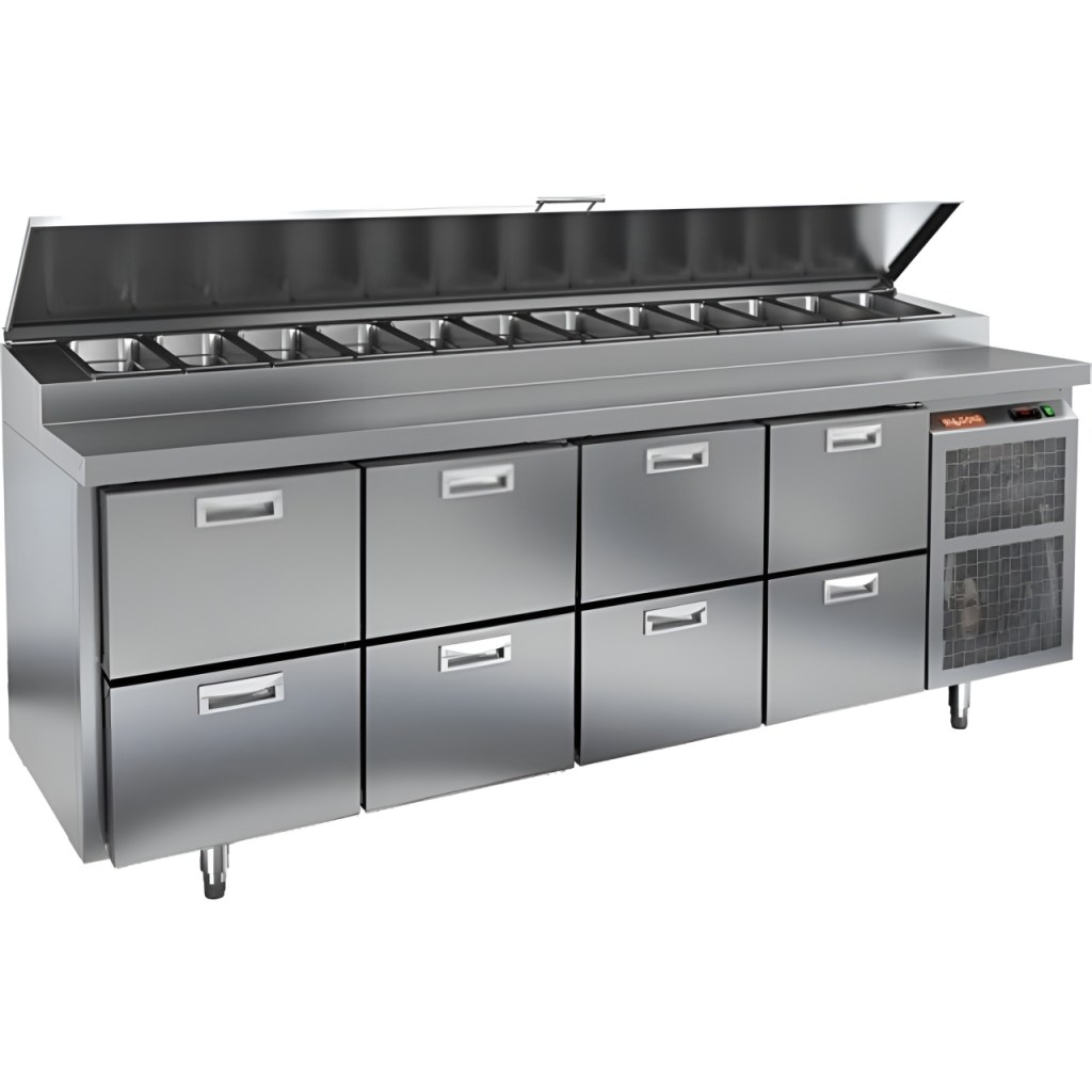 Каталог оборудования Холодильное оборудованиеСтолы охлаждаемыеСтолы холодильные для пиццыСтол холодильный для пиццы HiCold PZ1-2222GN (1/3H) Стол холодильный для пиццы HiCold PZ1-2222GN (1/3H) Код товара: 064-713 Поделиться: WhatsAppTelegram СравнитьДобавить в КПВ избранное 0 373 042 ₽ В корзину 0 шт Под заказСамовывоз сегодня бесплатно Взять в кредит Купить в лизинг Получить консультацию в WhatsApp Описание Характеристики Отзывы 0 Стол холодильный для пиццы HiCold PZ1-2222GN (1/3H) — профессиональное оборудование для предприятий общественного питания и торговли. Он сочетает рабочую поверхность для раскатки теста и подготовки ингредиентов с охлаждаемым блоком для кратковременного хранения скоропортящихся продуктов и напитков. Такое решение обеспечивает максимальное удобство — все необходимые компоненты всегда находятся под рукой. Корпус и столешница выполнены из нержавеющей стали, что гарантирует долговечность, устойчивость к повреждениям и лёгкость ухода. Основные особенности: Нержавеющая столешница и корпус — прочность, гигиеничность и лёгкость очистки Динамическая система охлаждения — равномерное распределение холода Автоматическая оттайка — стабильная работа без образования наледи Электронная панель управления — точная настройка температуры 8 выдвижных ящиков — удобная организация внутреннего пространства без дверцы Автоматические доводчики ящиков — комфорт при работе Легкозаменяемые магнитные уплотнители — поддержание герметичности Открытая агрегатная часть — лёгкий доступ для обслуживания Регулируемые по высоте ножки — установка на неровных поверхностях Максимальная глубина гастроёмкостей: 100 мм Глубина рабочей поверхности: 324 мм Толщина столешницы и теплоизоляции: 50 мм Вместимость салат-бара: до 12 гастроёмкостей Стол холодильный HiCold PZ1-2222GN (1/3H) — надёжный и функциональный холодильный стол для пиццы и салатов. Отсутствие дверцы и продуманная система хранения обеспечивают быстрый доступ к ингредиентам, удобство эксплуатации и высокую производительность на профессиональной кухне.Изображение товара, представленного на фото, может отличаться от его фактического вида. Показать все Габаритные размеры2280×700×1000 ммДиапазон рабочей температурыот +2 до +10 °CРасположение агрегатаБоковое Материал столешницыНержавеющая Тип столаС ящиками Объём660 лТип гастроемкостейGN 1/3 Количество ящиков8 штНапряжение220 ВМощность0,5 кВтТип охлажденияДинамическое Тип оттайкиАвтоматическая Габариты в упаковке2420×850×1080 ммВес нетто170 кгВес брутто236 кгБрендHicoldВсе холодильные столы для пиццы HicoldВсе нержавеющие холодильные столы для пиццы Оставить отзыв Еще никто не оставил отзыв на этот товар Ранее просмотрено Под заказ 200 090 ₽ Шкаф холодильный Abat ШХс-1,4-03 нерж.