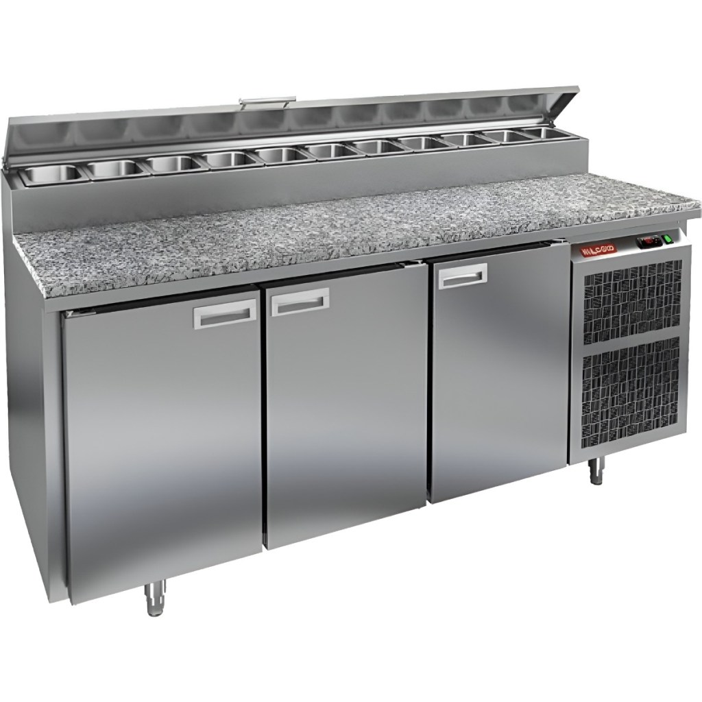 Стол холодильный HiCold PZ2-111GN (1/6) М камень — надёжный и функциональный стол для пиццы и салатов. Гранитная рабочая поверхность повышает прочность и долговечность оборудования, а продуманная конструкция обеспечивает удобство работы, быстрый доступ к ингредиентам и эффективное охлаждение продуктов на профессиональной кухне.