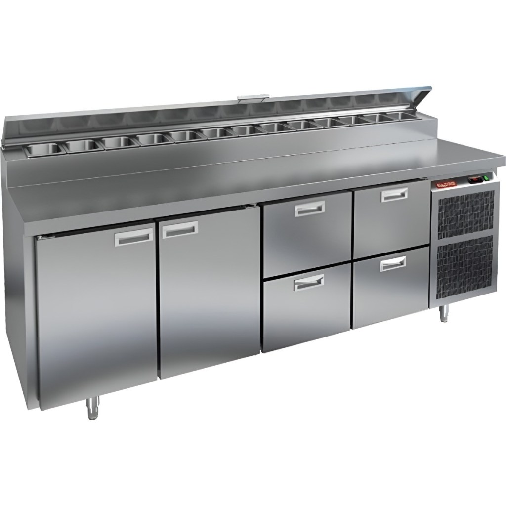 Каталог оборудования Холодильное оборудованиеСтолы охлаждаемыеСтолы холодильные для пиццыСтол холодильный для пиццы HiCold PZ2-1122GN (1/6) Стол холодильный для пиццы HiCold PZ2-1122GN (1/6) Код товара: 064-749 Поделиться: WhatsAppTelegram СравнитьДобавить в КПВ избранное 0 311 842 ₽ В корзину 0 шт Под заказСамовывоз сегодня бесплатно Взять в кредит Купить в лизинг Получить консультацию в WhatsApp Описание Характеристики Отзывы 0 Стол холодильный для пиццы HiCold PZ2-1122GN (1/6) предназначен для кухонь и предприятий общественного питания. Он используется для раскатки теста, подготовки ингредиентов для пиццы, салатов и других блюд, а также для охлаждения и кратковременного хранения скоропортящихся продуктов. Модель совмещает нержавеющую рабочую поверхность и охлаждаемый отсек с 2 дверями и 4 ящиками, обеспечивая удобный доступ к ингредиентам и эффективное хранение. Особенности: Динамическая система охлаждения для равномерного поддержания температуры Автоматическая оттайка для удобного обслуживания Электронная панель управления для точной настройки параметров Вместительная внутренняя полка формата GN 1/1 (размер 530×325 мм) 2 двери и 4 вместительных ящика для хранения ингредиентов Автоматические доводчики дверей с фиксатором открытого положения Легкозаменяемые магнитные уплотнители для герметичности Открытая агрегатная часть для легкого доступа к компонентам Регулируемые по высоте ножки для устойчивости Нержавеющая столешница глубиной 486 мм и толщиной 50 мм — устойчива к коррозии, легко моется и гигиенична Толщина теплоизоляции: 50 мм Максимальная глубина гастроемкостей: 100 мм Вместимость салат-бара: 13 гастроемкости Стол холодильный для пиццы HiCold PZ2-1122GN (1/6) — это надежный и функциональный стол для пиццы. Он объединяет рабочую поверхность и охлаждаемый отсек, упрощает хранение и подготовку ингредиентов, обеспечивает удобство работы повара и соответствует стандартам профессиональной кухни. Изображение товара, представленного на фото, может отличаться от его фактического вида. Показать все Габаритные размеры2280×700×1000 ммДиапазон рабочей температурыот +2 до +10 °CРасположение агрегатаБоковое Материал столешницыНержавеющая Тип столаС дверьми и ящиками Тип двериГлухая Объём570 лТип гастроемкостейGN 1/6 Количество дверей2 штКоличество ящиков4 штРазмер полки530×325 ммНапряжение220 ВМощность0,51 кВтТип охлажденияДинамическое Тип оттайкиАвтоматическая Габариты в упаковке2420×850×1080 ммВес нетто208 кгВес брутто240 кгБрендHicoldВсе холодильные столы для пиццы HicoldВсе нержавеющие холодильные столы для пиццы Оставить отзыв Еще никто не оставил отзыв на этот товар Ранее просмотрено Под заказ 147 321 ₽ Стол холодильный для пиццы HiCold PZ2-1GN (1/6) Под заказ 245 242 ₽ Стол холодильный для пиццы HiCold PZ2-22GN (1/6) Под заказ 214 642 ₽ Стол холодильный для пиццы HiCold PZ2-12GN (1/6) Под заказ 275 842 ₽ Стол холодильный для пиццы HiCold PZ1-33GN (1/3)