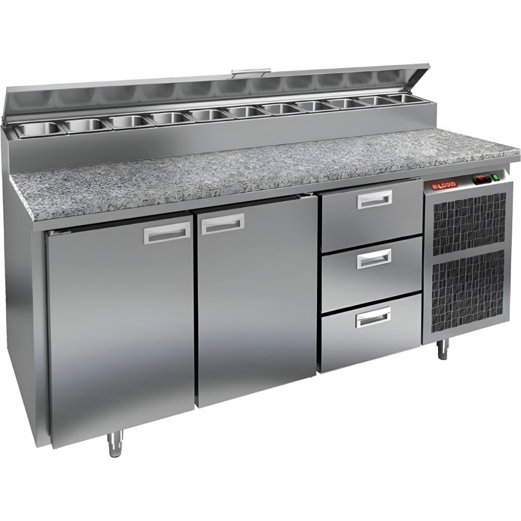 Каталог оборудования Холодильное оборудованиеСтолы охлаждаемыеСтолы холодильные для пиццыСтол холодильный для пиццы HiCold PZ2-113GN (1/6) камень Стол холодильный для пиццы HiCold PZ2-113GN (1/6) камень Код товара: 064-762 Поделиться: WhatsAppTelegram СравнитьДобавить в КПВ избранное 0 292 761 ₽ В корзину 0 шт Под заказСамовывоз сегодня бесплатно Взять в кредит Купить в лизинг Получить консультацию в Max Описание Характеристики Отзывы 0 Инструкции 2 Стол холодильный для пиццы HiCold PZ2-113/GN (1/6) камень предназначен для кухонь и предприятий общественного питания. Он используется для раскатки теста, подготовки ингредиентов для пиццы, салатов и других блюд, а также для охлаждения и кратковременного хранения скоропортящихся продуктов. Модель совмещает гранитную рабочую поверхность и охлаждаемый отсек с 2 дверьми и 3 ящиками, обеспечивая удобный доступ к ингредиентам и эффективное хранение. Особенности: Динамическая система охлаждения для равномерного поддержания температуры Автоматическая оттайка для удобного обслуживания Электронная панель управления для точной настройки параметров Вместительная внутренняя полка формата GN 1/1 (размер 530×325 мм) 2 двери и 3 вместительных ящика для хранения ингредиентов Автоматические доводчики дверей с фиксатором открытого положения Легкозаменяемые магнитные уплотнители для герметичности Открытая агрегатная часть для легкого доступа к компонентам Регулируемые по высоте ножки для устойчивости Гранитная рабочая поверхность глубиной 486 мм и толщиной 50 мм — устойчива к повреждениям, высоким температурам и царапинам Толщина теплоизоляции: 50 мм Максимальная глубина гастроемкостей: 100 мм Вместимость салат-бара: 11 гастроемкости Стол холодильный HiCold PZ2-113/GN (1/6) камень — это надёжный и функциональный стол для пиццы. Он сочетает рабочую поверхность и охлаждаемый отсек, облегчает хранение и подготовку ингредиентов, повышает удобство работы повара и соответствует стандартам профессиональной кухни.Изображение товара, представленного на фото, может отличаться от его фактического вида. Показать все Габаритные размеры1835×700×1000 ммДиапазон рабочей температурыот +2 до +10 °CРасположение агрегатаБоковое Материал столешницыГранитная Тип столаС дверьми и ящиками Тип двериГлухая Объём505 лТип гастроемкостейGN 1/6 Количество дверей2 штКоличество ящиков3 штРазмер полки530×325 ммНапряжение220 ВМощность0,5 кВтТип охлажденияДинамическое Тип оттайкиАвтоматическая Габариты в упаковке2000×850×1140 ммВес нетто172 кгВес брутто248 кгБрендHicoldВсе холодильные столы для пиццы Hicold Оставить отзыв Еще никто не оставил отзыв на этот товар Паспорт на HICOLD PZ2-113/GN.pdfДекларация о соответствии.pdf Ранее просмотрено Под заказ 290 061 ₽ Стол холодильный для пиццы HiCold PZ1-1111GN (1/3) камень