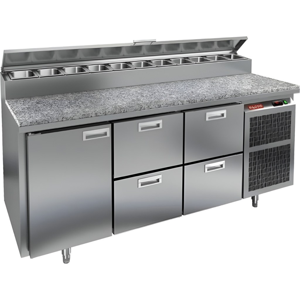 Каталог оборудования Холодильное оборудованиеСтолы охлаждаемыеСтолы холодильные для пиццыСтол холодильный для пиццы HiCold PZ2-122GN (1/6) камень Стол холодильный для пиццы HiCold PZ2-122GN (1/6) камень Код товара: 064-757 Поделиться: WhatsAppTelegram СравнитьДобавить в КПВ избранное 0 308 061 ₽ В корзину 0 шт Под заказСамовывоз сегодня бесплатно Взять в кредит Купить в лизинг Получить консультацию в Max Описание Характеристики Отзывы 0 Стол холодильный для пиццы HiCold PZ2-122GN (1/6) камень предназначен для кухонь и предприятий общественного питания. Он используется для раскатки теста, подготовки ингредиентов для пиццы, салатов и других блюд, а также для охлаждения и кратковременного хранения скоропортящихся продуктов. Модель совмещает гранитную рабочую поверхность и охлаждаемый отсек с 1 дверью и 4 ящиками, обеспечивая удобный доступ к ингредиентам и эффективное хранение. Особенности: Динамическая система охлаждения для равномерного поддержания температуры Автоматическая оттайка для удобного обслуживания Электронная панель управления для точной настройки параметров Вместительная внутренняя полка формата GN 1/1 (размер 530×325 мм) 1 дверь и 4 вместительных ящика для хранения ингредиентов Автоматические доводчики дверей с фиксатором открытого положения Легкозаменяемые магнитные уплотнители для герметичности Открытая агрегатная часть для легкого доступа к компонентам Регулируемые по высоте ножки для устойчивости Гранитная рабочая поверхность глубиной 486 мм и толщиной 50 мм — устойчива к повреждениям, высоким температурам и царапинам Толщина теплоизоляции: 50 мм Максимальная глубина гастроемкостей: 100 мм Вместимость салат-бара: 11 гастроемкости Стол холодильный HiCold PZ2-122GN (1/6) камень — это надёжный и функциональный стол для пиццы. Он сочетает рабочую поверхность и охлаждаемый отсек, облегчает хранение и подготовку ингредиентов, повышает удобство работы повара и соответствует стандартам профессиональной кухни.Изображение товара, представленного на фото, может отличаться от его фактического вида. Показать все Габаритные размеры1835×700×1000 ммДиапазон рабочей температурыот +2 до +10 °CРасположение агрегатаБоковое Материал столешницыГранитная Тип столаС дверьми и ящиками Тип двериГлухая Объём350 лТип гастроемкостейGN 1/6 Количество дверей1 штКоличество ящиков4 штРазмер полки530×325 ммНапряжение220 ВМощность0,5 кВтТип охлажденияДинамическое Тип оттайкиАвтоматическая Габариты в упаковке2000×850×1140 ммВес нетто172 кгВес брутто248 кгБрендHicoldВсе холодильные столы для пиццы Hicold Оставить отзыв Еще никто не оставил отзыв на этот товар Ранее просмотрено Под заказ 114 342 ₽ Стол холодильный для пиццы HURAKAN HKN-PZLG3