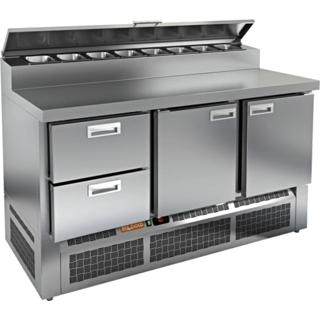 Каталог оборудования Холодильное оборудованиеСтолы охлаждаемыеСтолы холодильные для пиццыСтол холодильный для пиццы HiCold PZE2-211/GN (1/6H) Стол холодильный для пиццы HiCold PZE2-211/GN (1/6H) Код товара: 064-973 Поделиться: WhatsAppTelegram СравнитьДобавить в КПВ избранное 0 217 161 ₽ В корзину 0 шт Под заказСамовывоз сегодня бесплатно Взять в кредит Купить в лизинг Получить консультацию в WhatsApp Описание Характеристики Отзывы 0 Стол холодильный для пиццы HiCold PZE2-211/GN (1/6H) предназначен для использования на предприятиях общественного питания и торговли. Он совмещает охлаждаемый объём и удобную рабочую поверхность, обеспечивая повару быстрый доступ к ингредиентам и комфорт при подготовке блюд — от пиццы и салатов до закусок и десертов. Модель отличается прочной и гигиеничной конструкцией: корпус и столешница изготовлены из нержавеющей стали, что гарантирует износостойкость и лёгкость в уходе даже при интенсивной эксплуатации. Ключевые особенности: Электронная панель управления – точная регулировка температурного режима 2 глухие дверцы – надёжное хранение продуктов и удобство эксплуатации 2 выдвижных ящика – быстрая организация ингредиентов и лёгкий доступ к ним Салат-бар на 8 гастроемкостей – удобное размещение и быстрый доступ к ингредиентам Автоматические доводчики дверей с фиксатором открытого положения – комфорт при работе Легкозаменяемые магнитные уплотнители – надёжная герметизация и простота обслуживания Открытая агрегатная часть – лёгкий доступ для технического обслуживания Регулируемые по высоте ножки – устойчивость на разных типах покрытия Максимальная глубина гастроемкостей: 100 мм Глубина рабочей поверхности: 486 мм Толщина столешницы: 50 мм HiCold PZE2-211/GN (1/6H) — универсальный стол для пиццы, сочетающий вместительное охлаждение и рабочую поверхность из нержавеющей стали. Подходит для ресторанов, кафе и пиццерий, где важно удобство, гигиена и надёжность оборудования.Изображение товара, представленного на фото, может отличаться от его фактического вида. Показать все Габаритные размеры1485×700×990 ммДиапазон рабочей температурыот +2 до +10 °CРасположение агрегатаНижнее Материал столешницыНержавеющая Тип столаС дверьми и ящиками Тип двериГлухая Объём375 лТип гастроемкостейGN 1/6 Количество дверей2 штКоличество ящиков2 штРазмер полки530×325 ммНапряжение220 ВМощность0,2 кВтТип охлажденияДинамическое Тип оттайкиАвтоматическая СтолешницаС бортом Габариты в упаковке1700×850×1180 ммВес нетто123 кгВес брутто175 кгБрендHicoldВсе холодильные столы для пиццы HicoldВсе нержавеющие холодильные столы для пиццы Оставить отзыв Еще никто не оставил отзыв на этот товар Ранее просмотрено Под заказ 242 721 ₽ Стол холодильный для пиццы HiCold PZE2-1111/GN (1/6) М Под заказ 342 622 ₽ Стол холодильный для пиццы HiCold PZE1-2222GN (1/3) Под заказ 260 272 ₽ Стол холодильный для пиццы HiCold PZ1-113GN (1/3H)