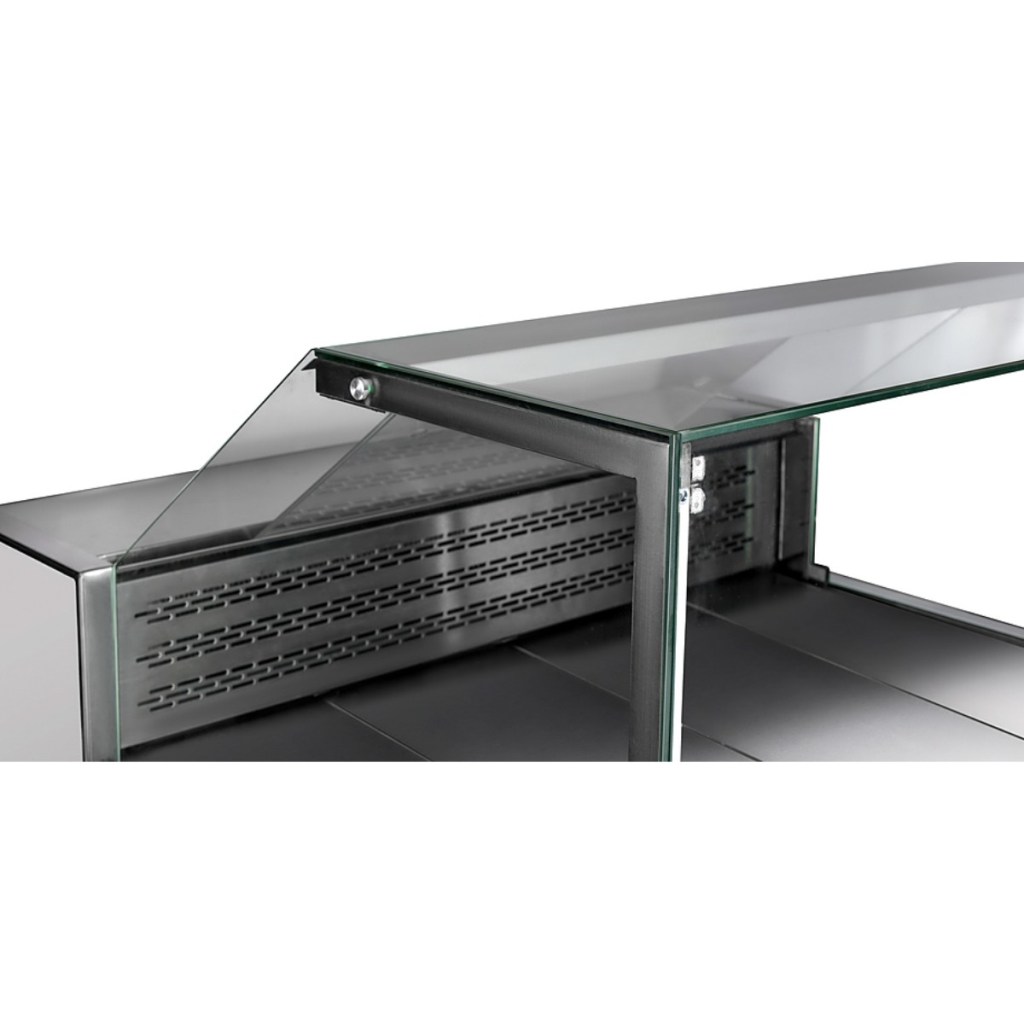 Витрина оснащена прямым фронтальным стеклом, которое обеспечивает хороший обзор товара, LED-подсветкой экспозиционной зоны и вместительной охлаждаемой камерой для хранения запаса продукции. Рабочая и экспозиционная поверхности выполнены из нержавеющей стали, что гарантирует высокую гигиеничность и долговечность оборудования.